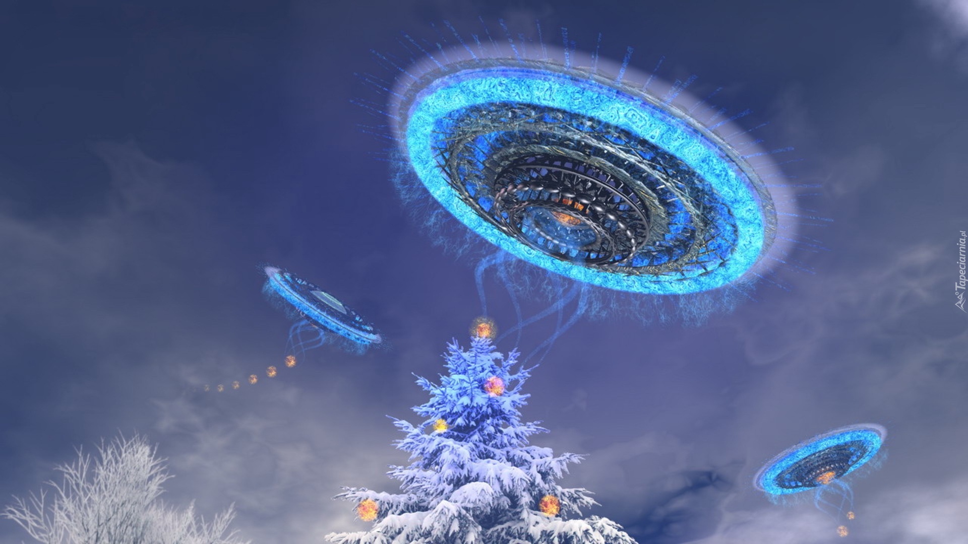Edytor tapety: Choinka, Zima, Ufo