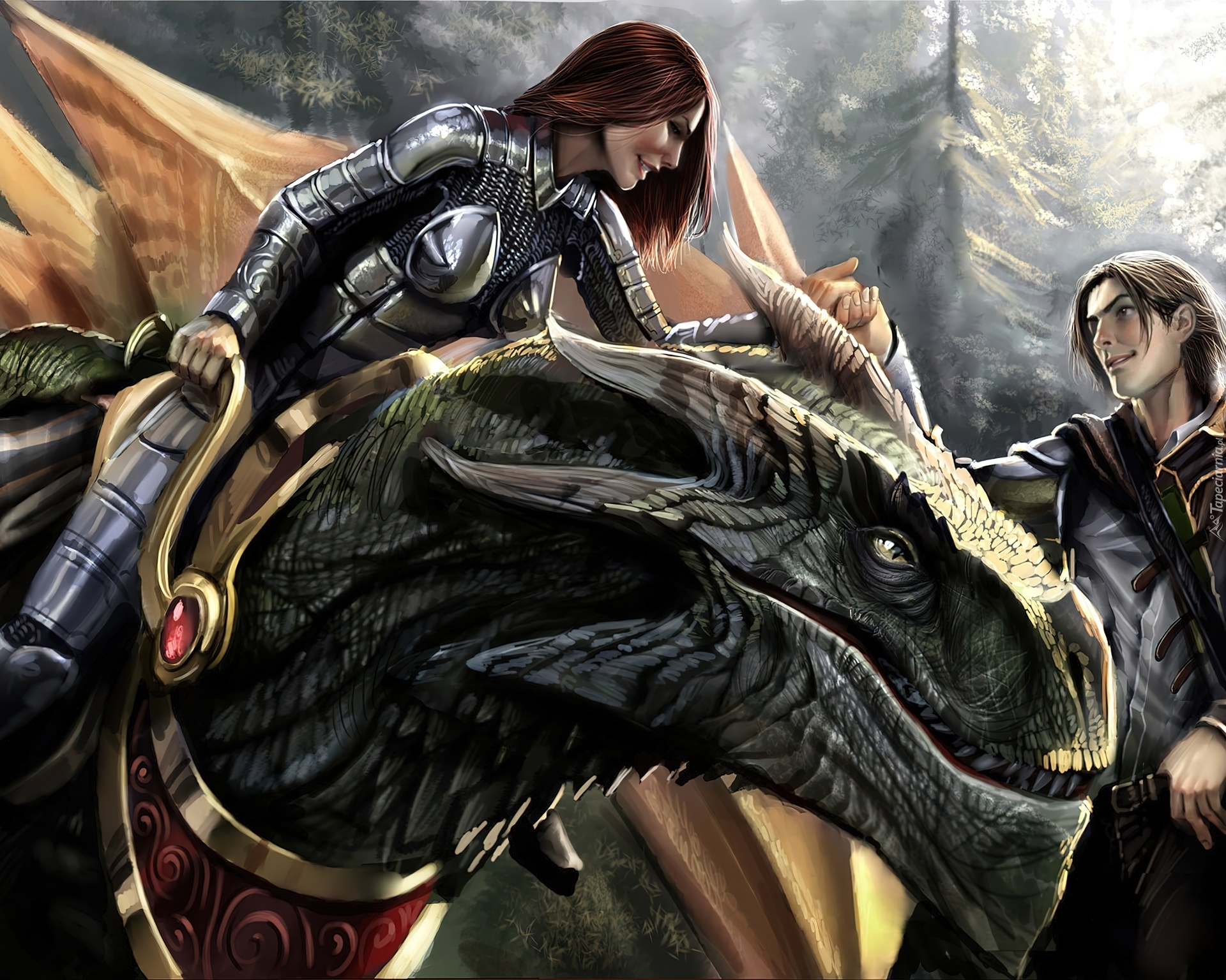 Edytor tapety: Dziewczyna, Rycerz, Smok