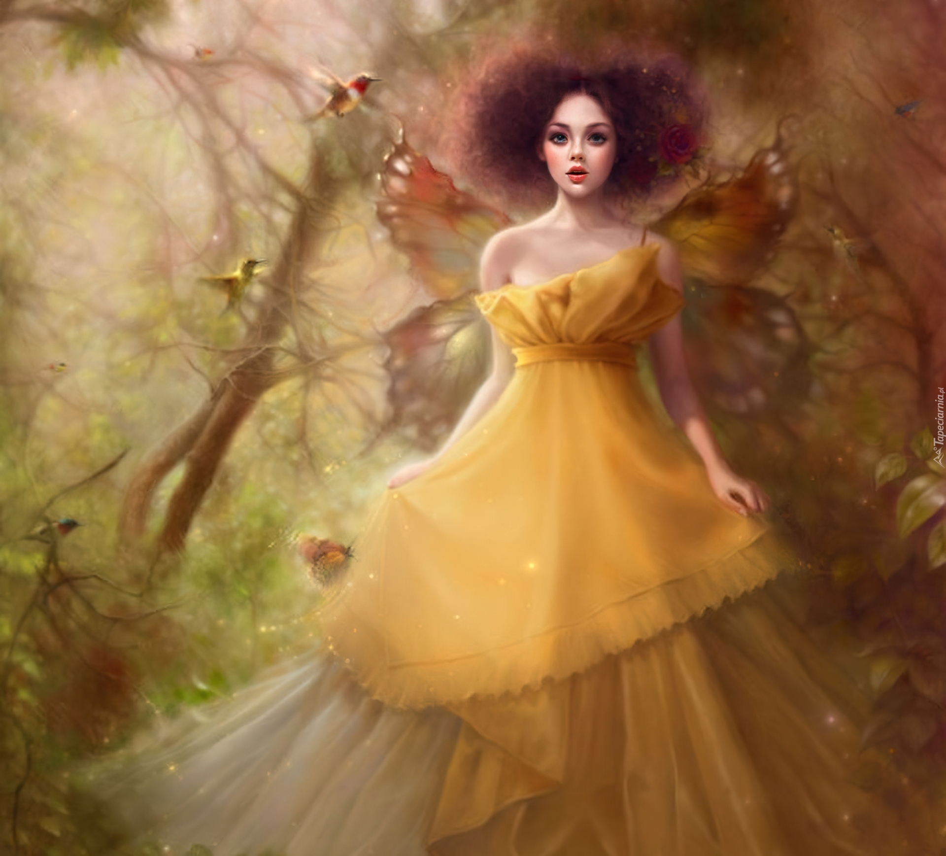 Edytor tapety: Dziewczyna, Suknia, Las