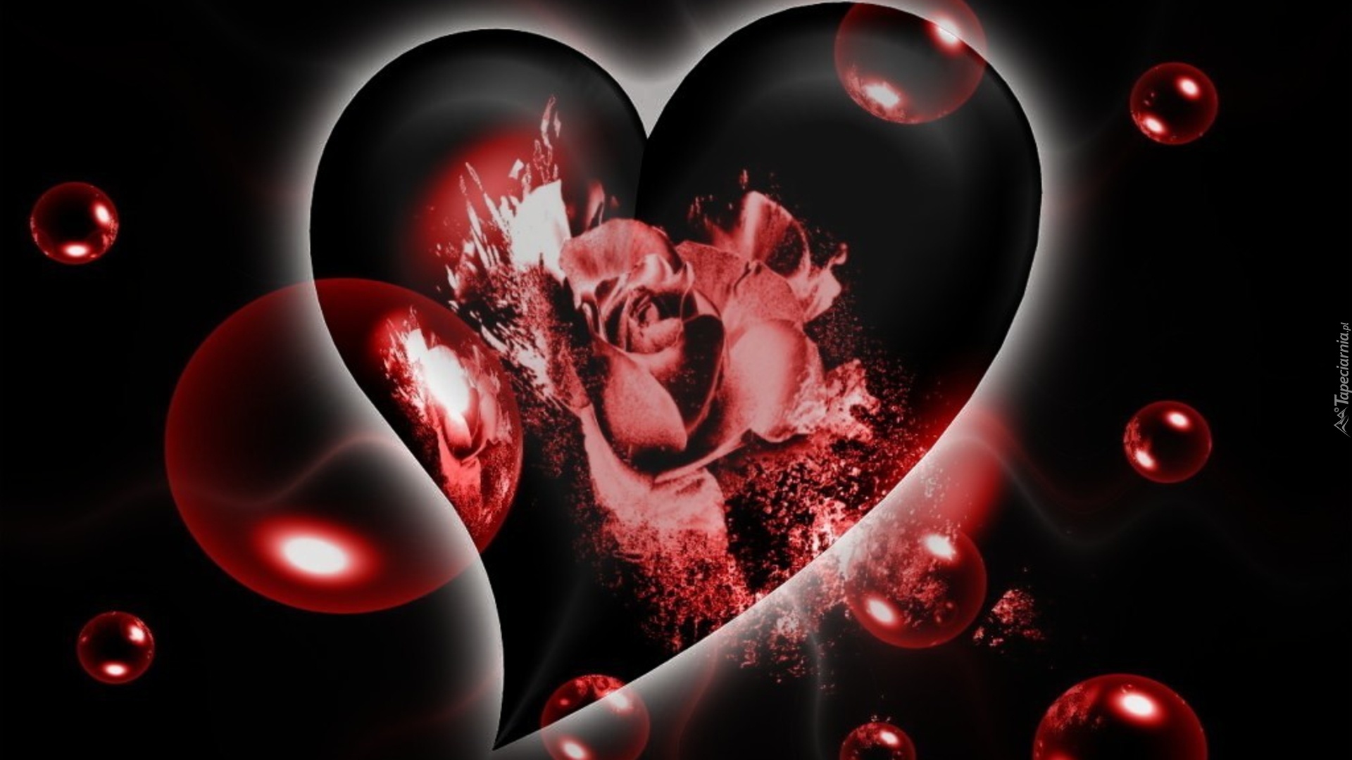 Edytor tapety: Serce, Czerwona, Róża, Bańki