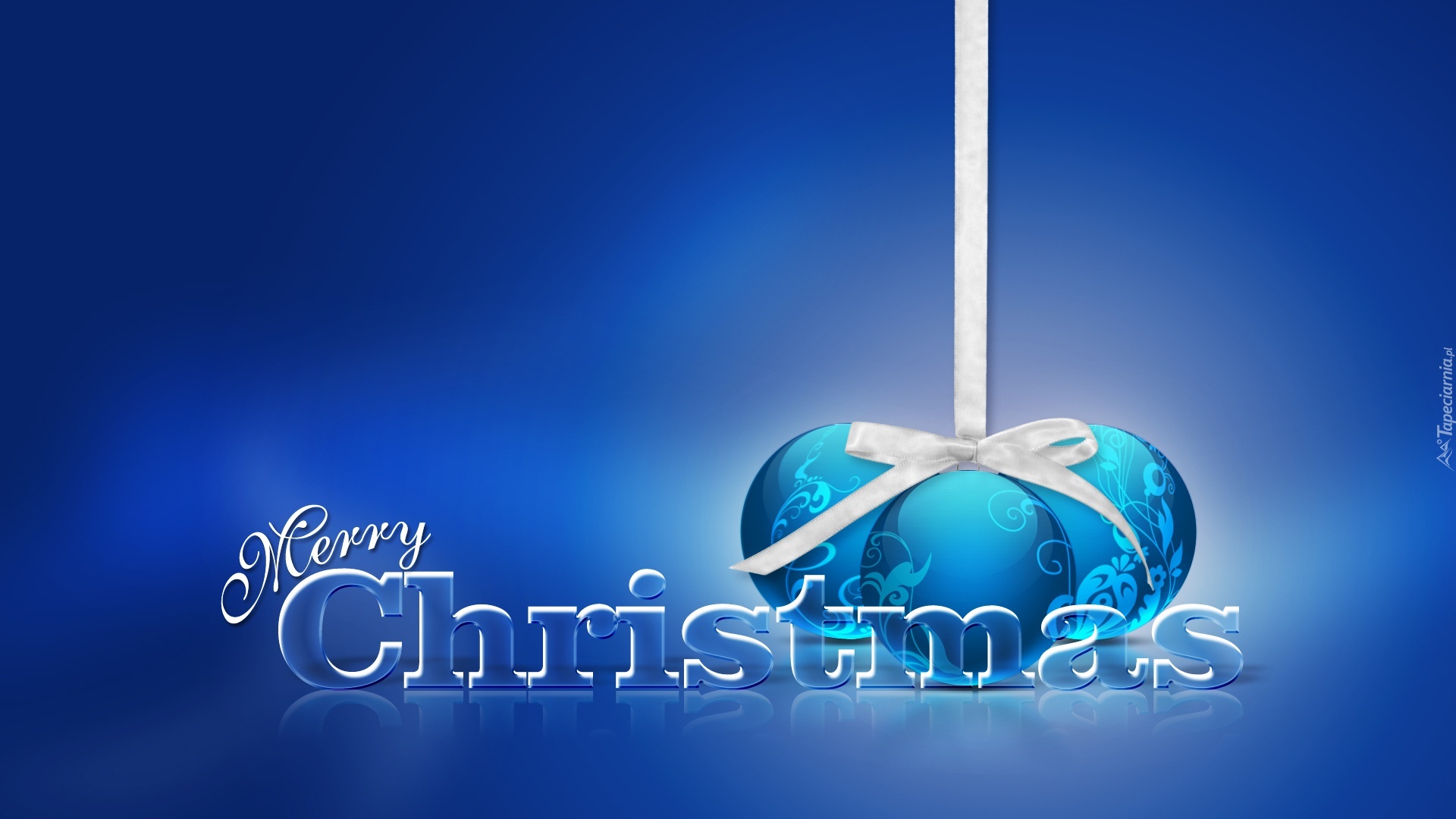 Edytor tapety: Niebieskie, Bombki, Kokardka, Wesołych, Świąt