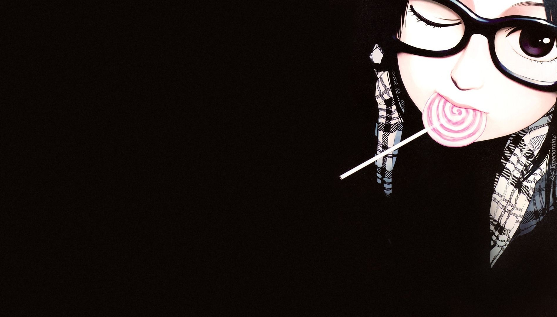 Edytor tapety: Dziewczyna, Lizak, Okulary