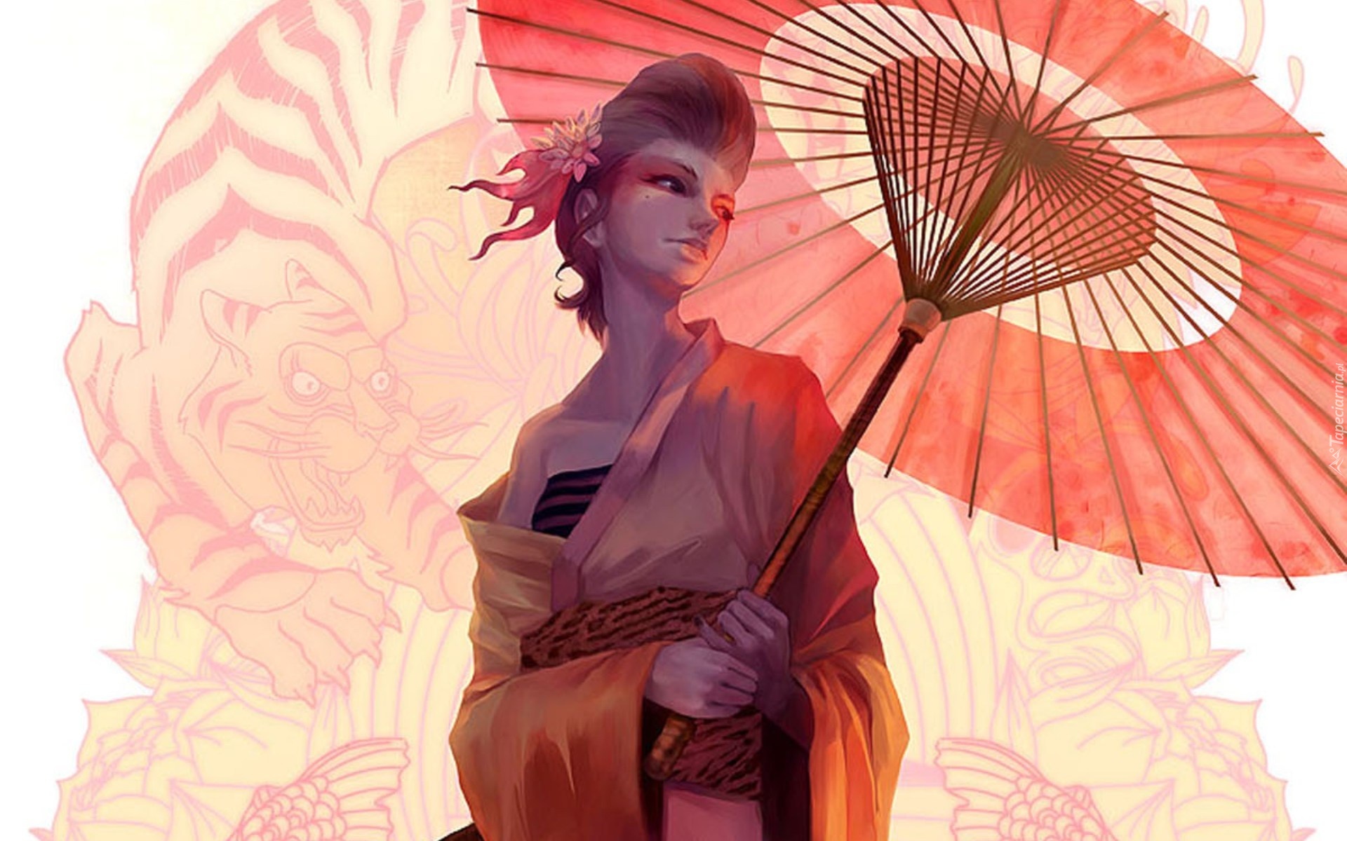 Edytor tapety: Japonka, Parasol, Manga Anime