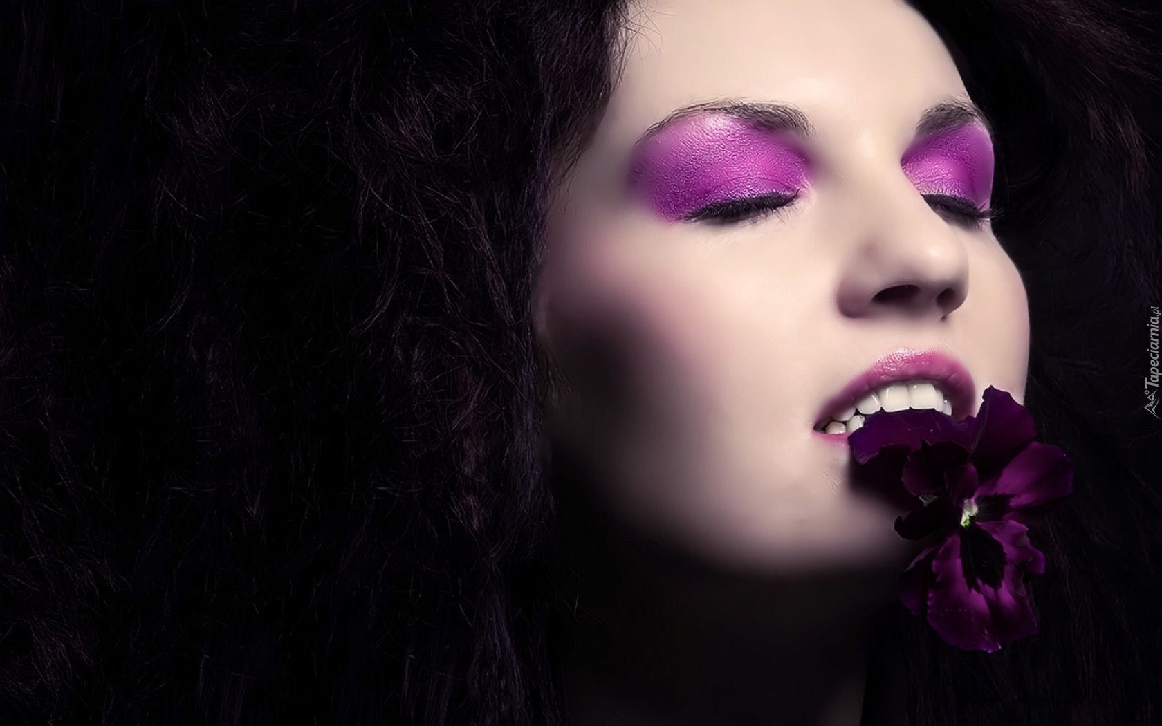 Edytor tapety: Kobieta, Fioletowy, Makijaż, Kwiat