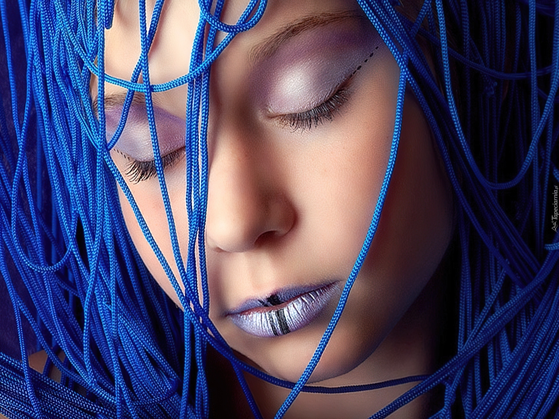 Edytor tapety: Kobieta, Niebieskie, Sznurówki