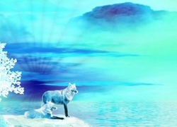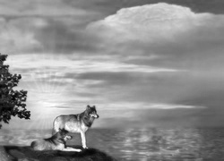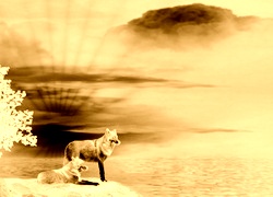 Edytor tapety: Dwa, Wilki, Czerwony, Świt
