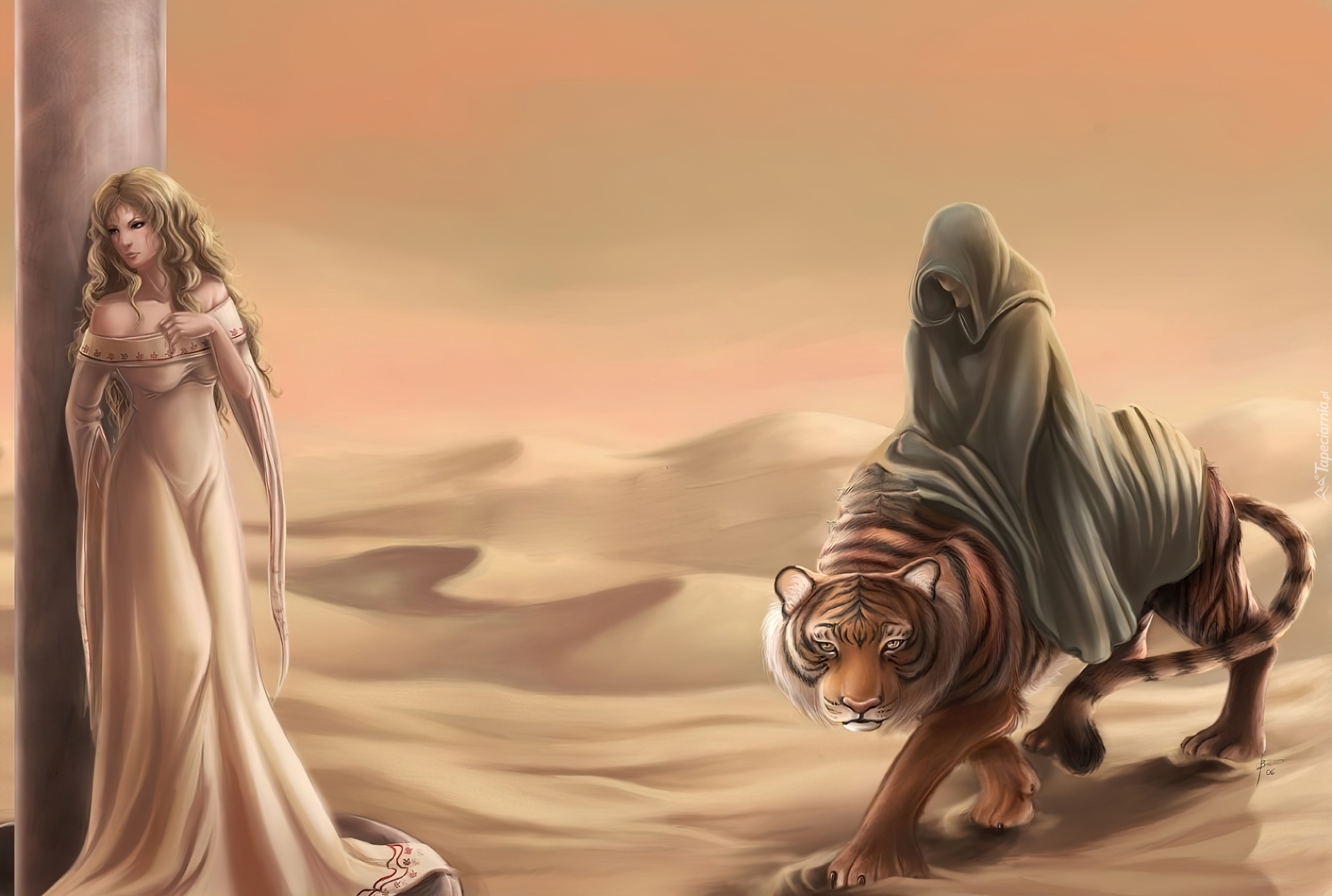 Edytor tapety: Dziewczyna, Tygrys, Postać