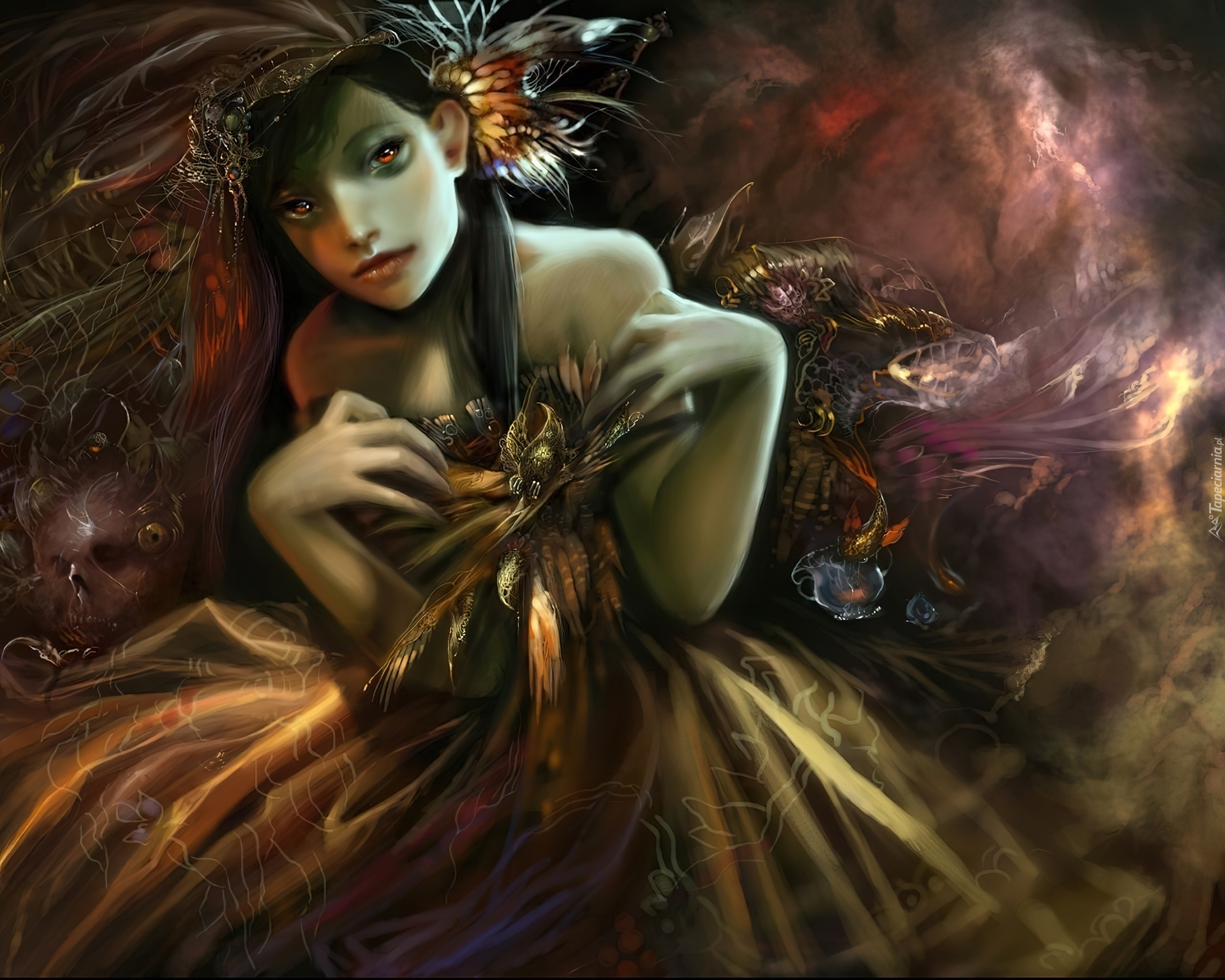 Edytor tapety: Dziewczyna, Złota, Suknia, Grafika