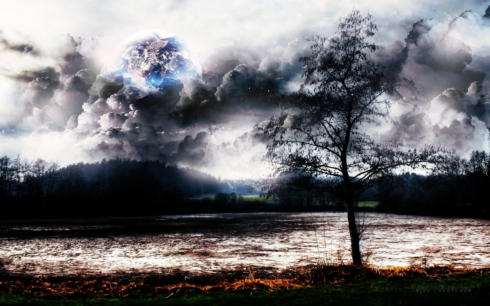 Edytor tapety: Drzewo, Chmury, Jezioro
