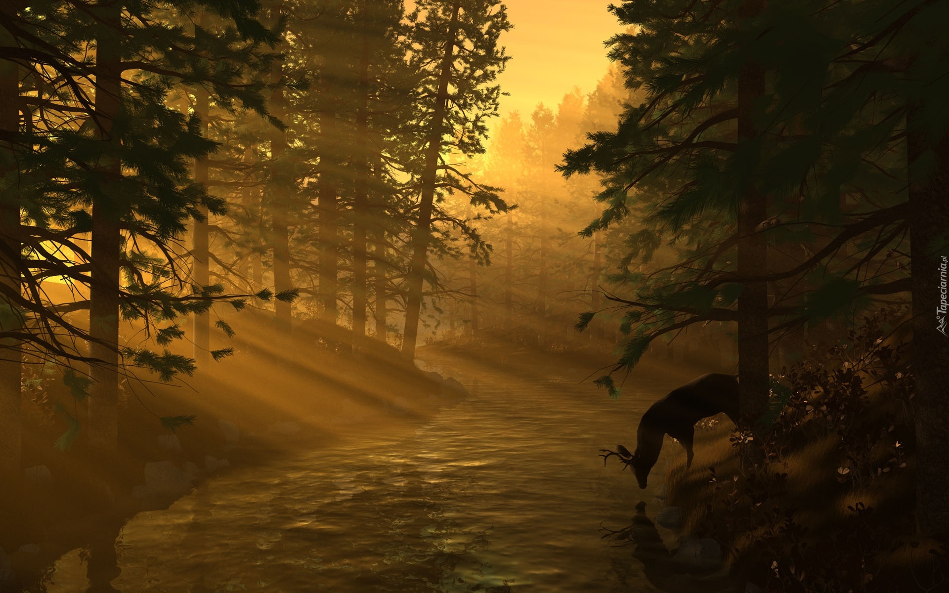 Edytor tapety: Las, Promienie, Jeleń
