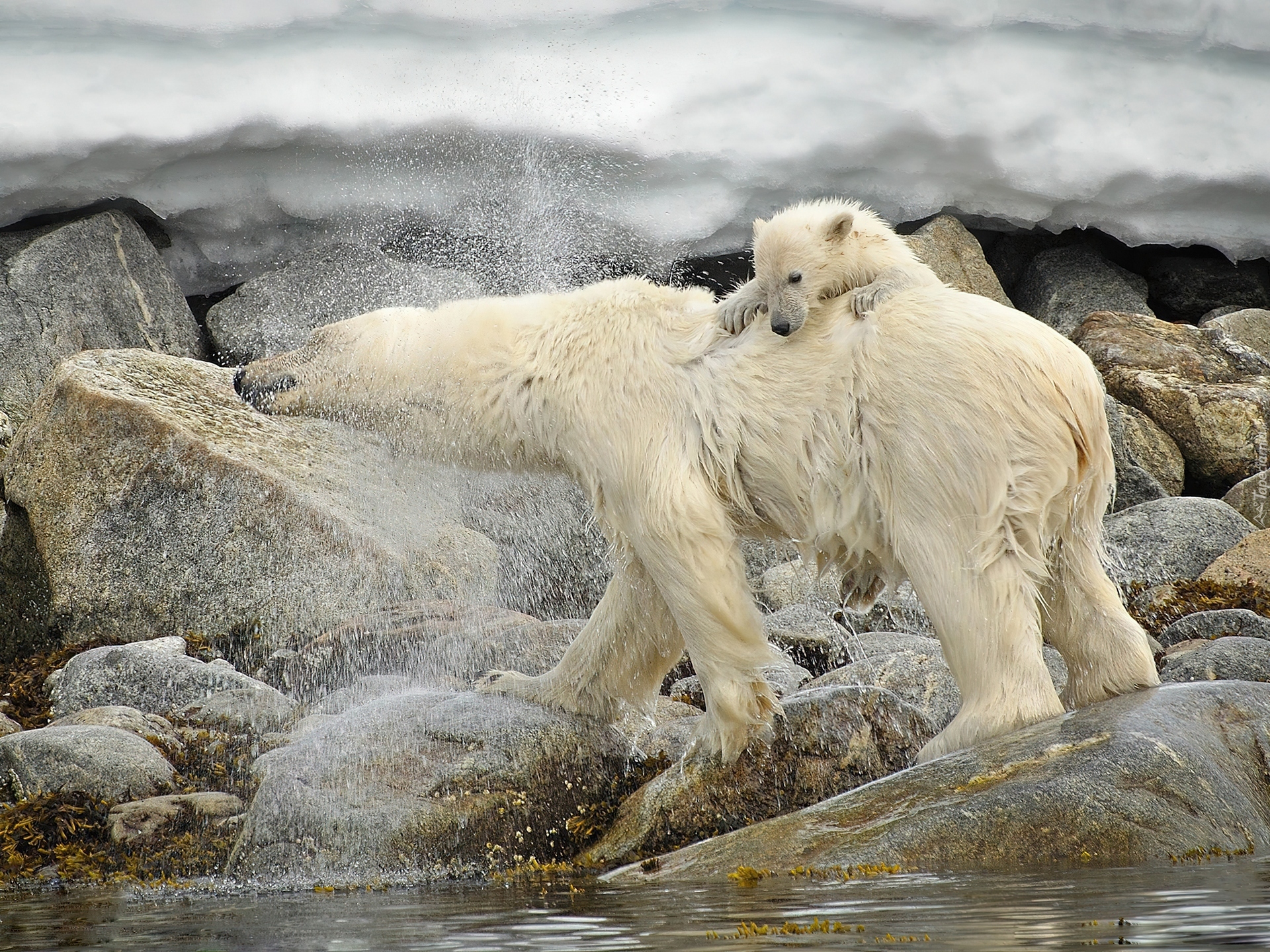 Edytor tapety: Niedźwiedzie, Polarne, Woda, Kamienie