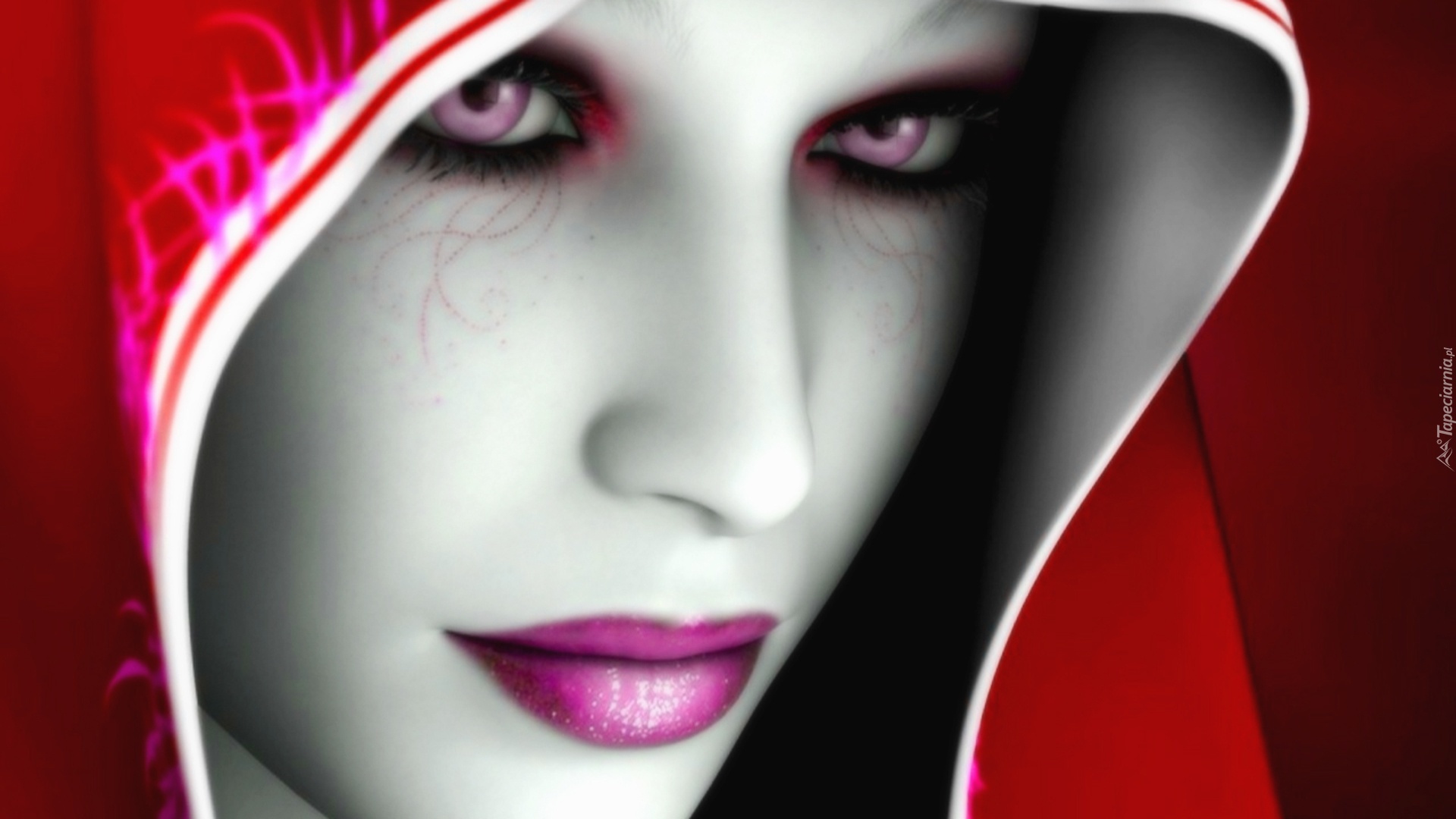 Edytor tapety: Kobieta, Różowe, Oczy, Kaptur