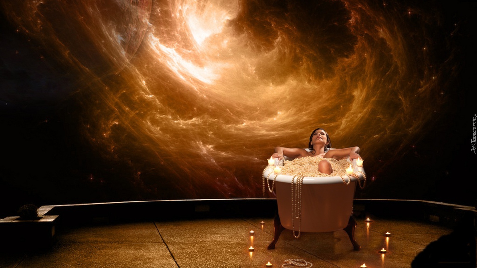 Edytor tapety: Dziewczyna, Perły, Wanna, Świece