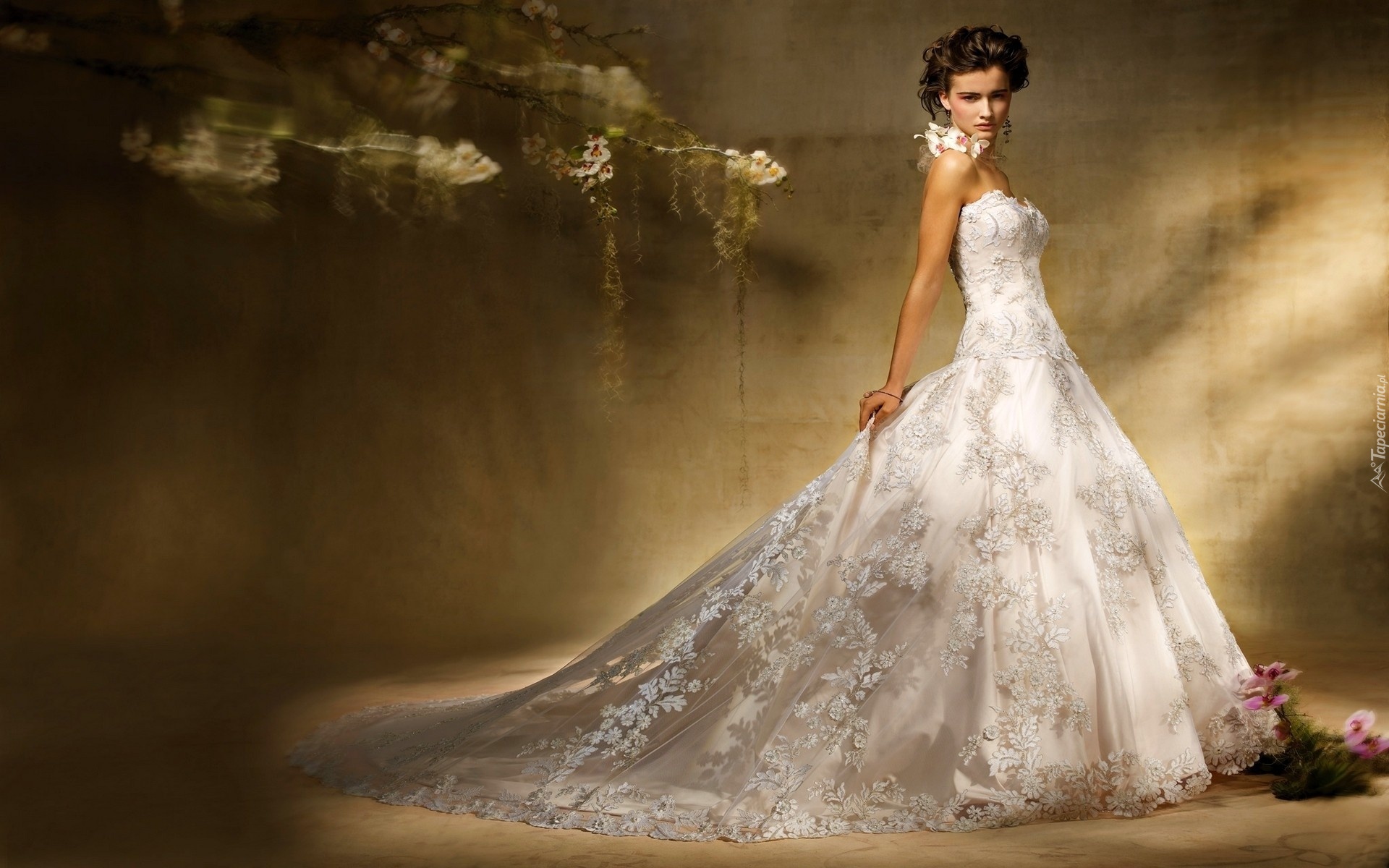 Edytor tapety: Kobieta, Suknia, Ślubna, Kwiaty