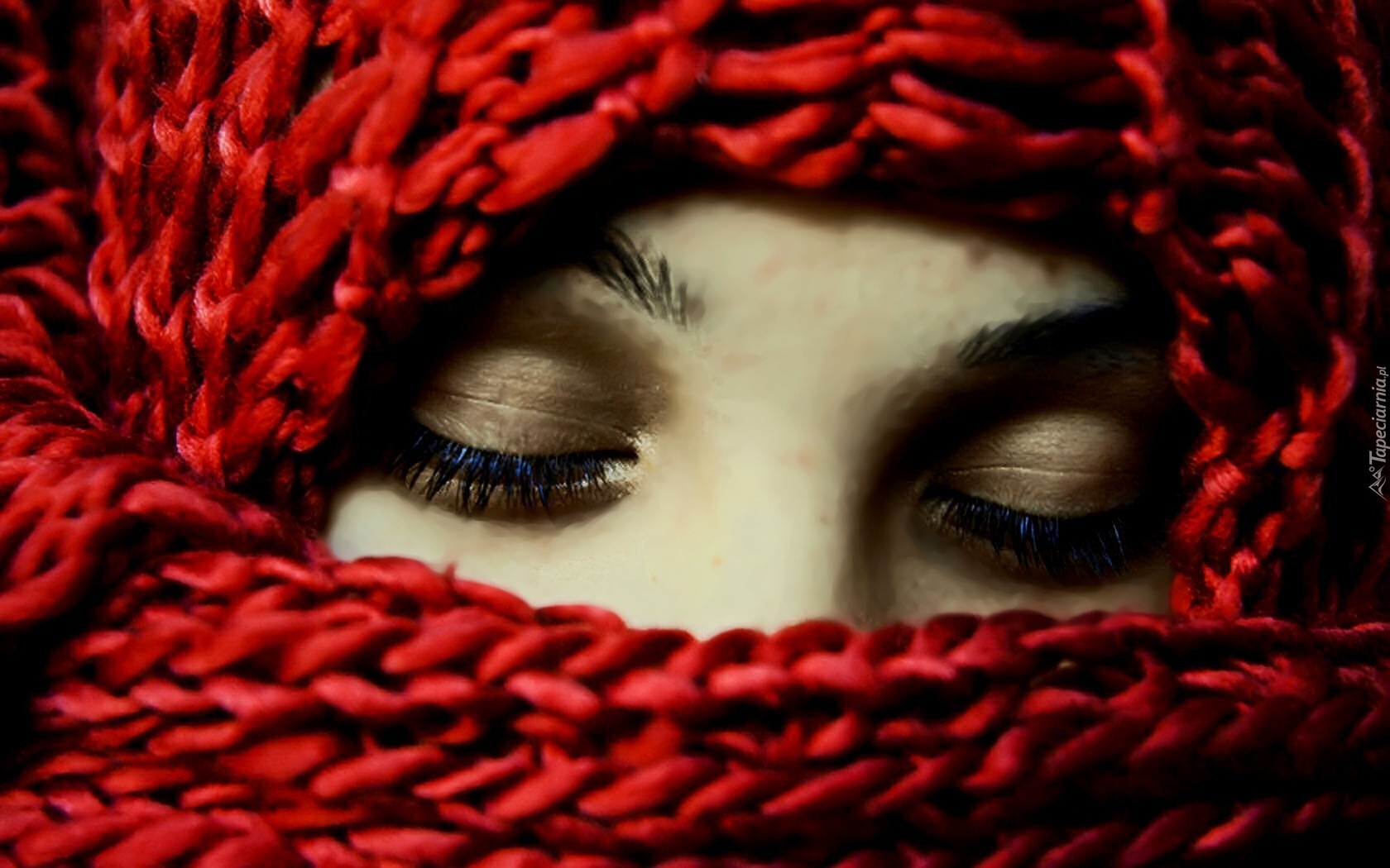 Edytor tapety: Twarz, Kobiety, Czerwony, Szal