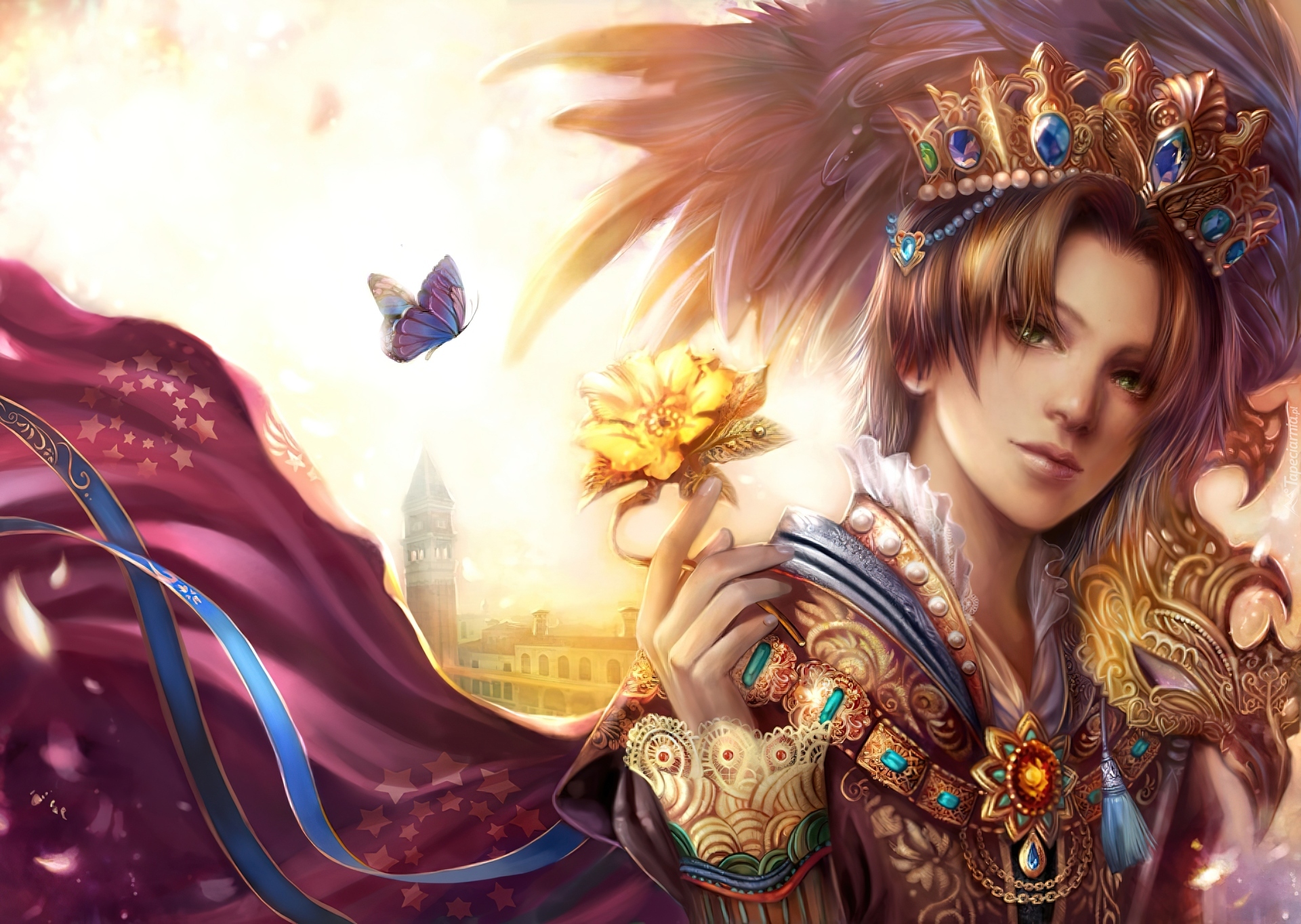 Edytor tapety: Kobieta, Korona, Kwiat, Motyl