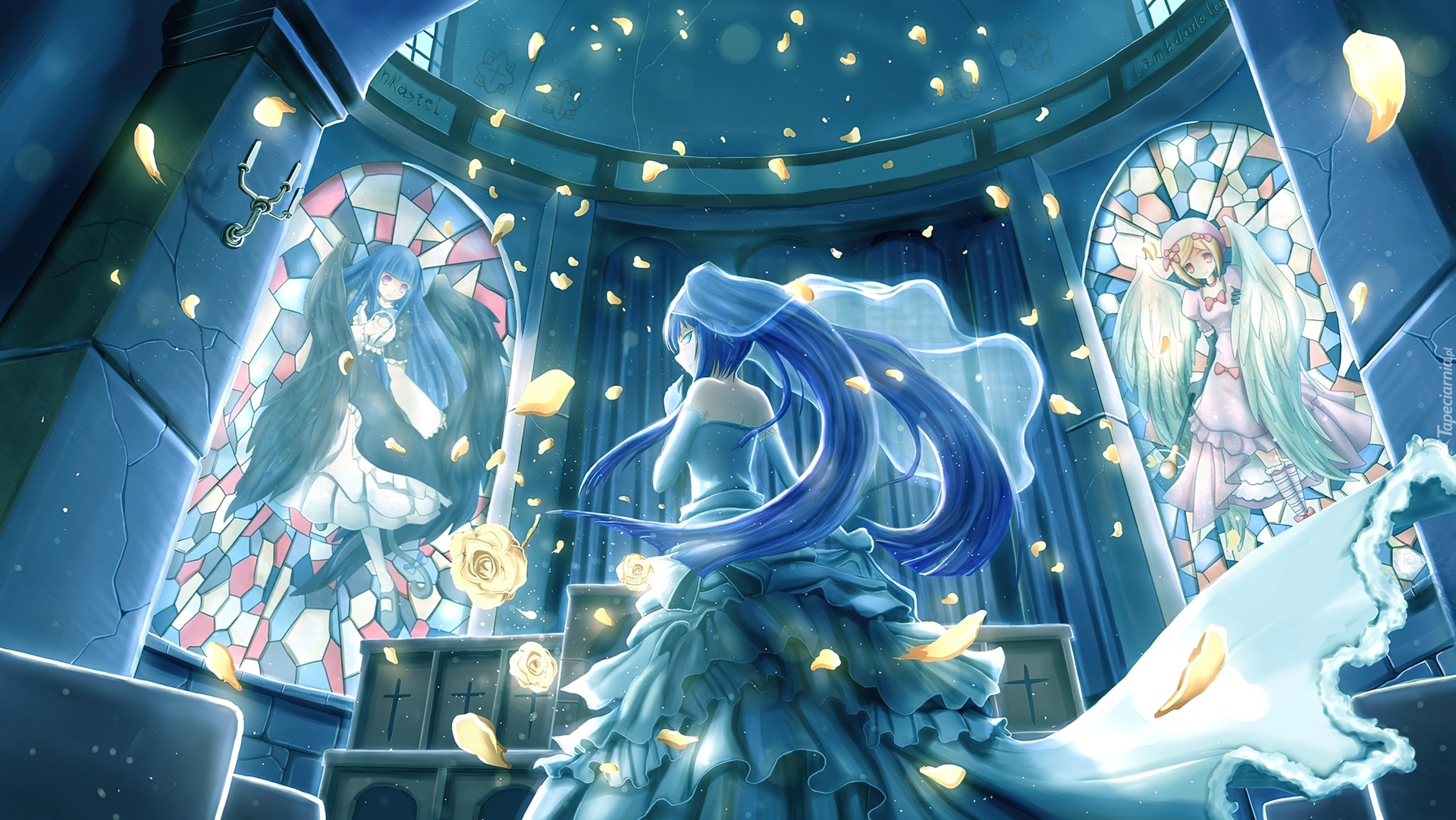 Edytor tapety: Dziewczyna, Kościół, Płatki, Kwiatów