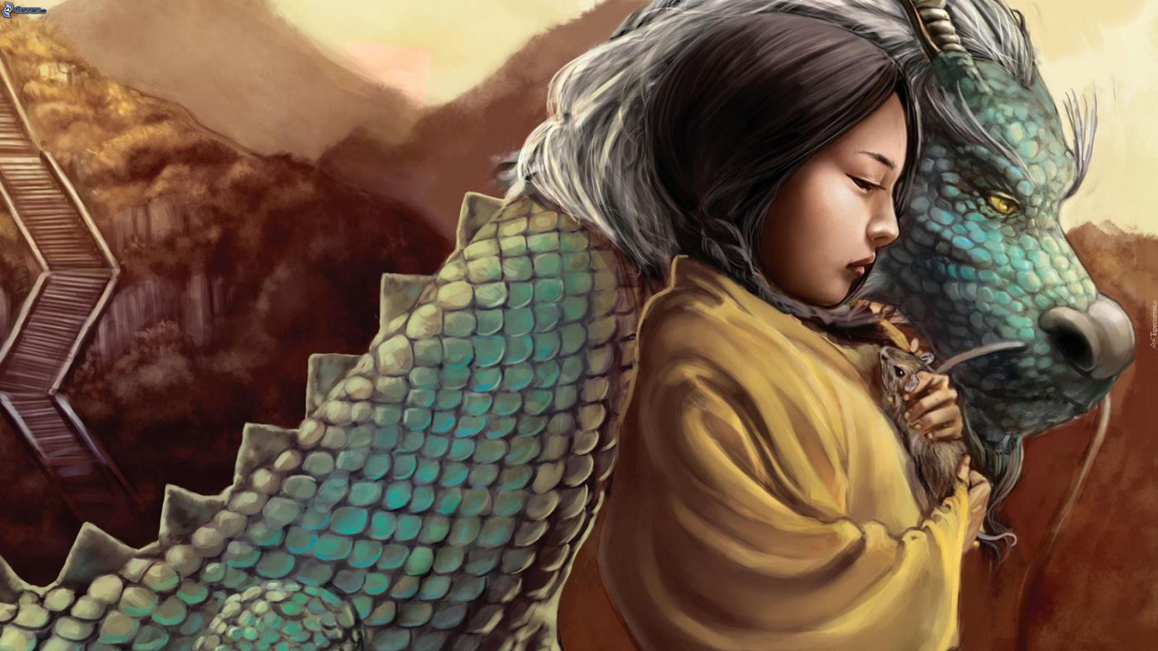 Edytor tapety: Smutna, Dziewczynka, Szczur, Smok