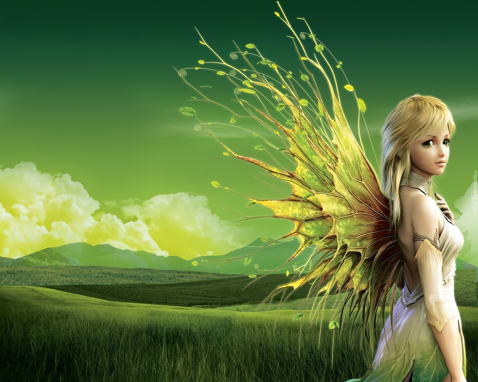 Edytor tapety: Dziewczyna, Motyl, Łąka