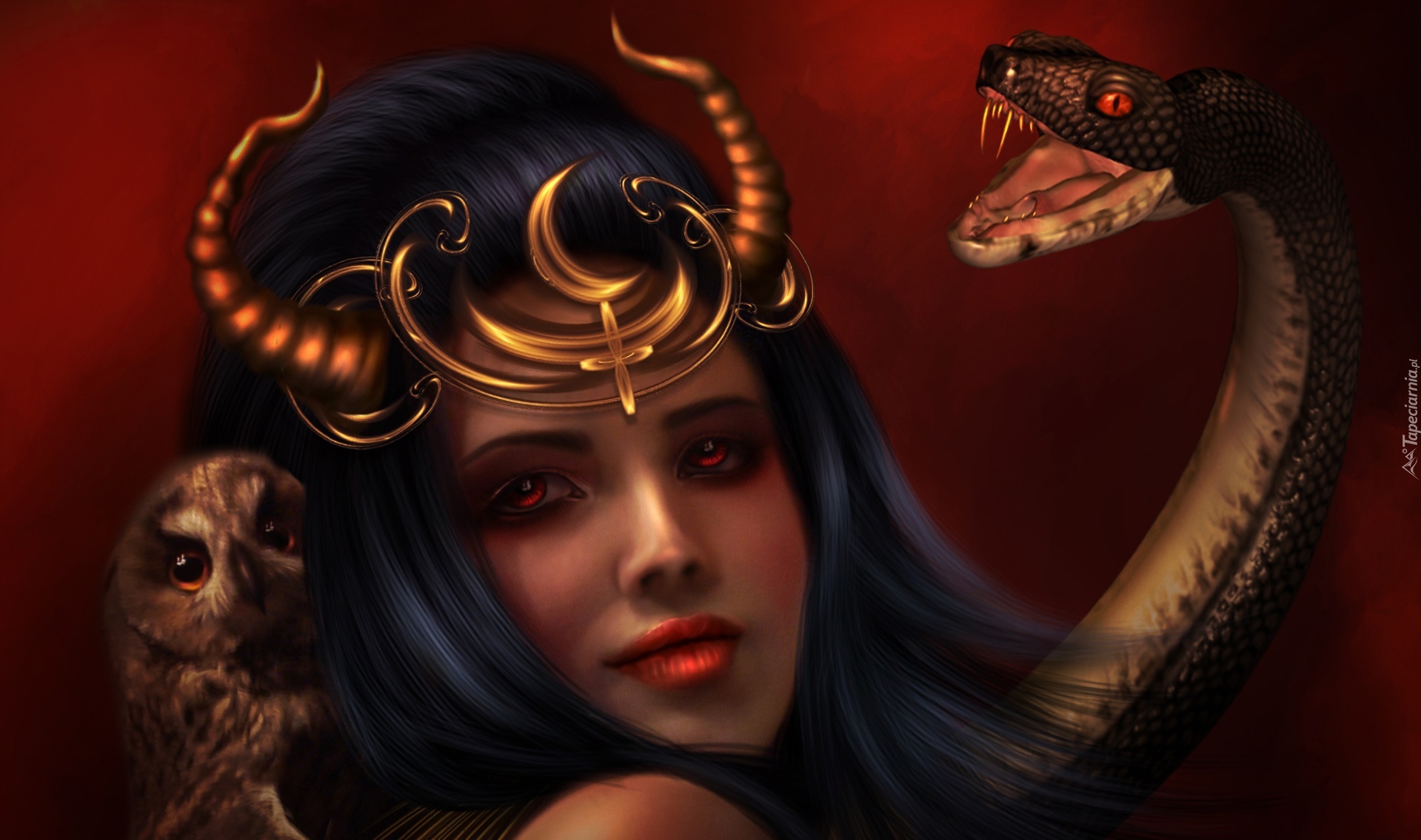 Edytor tapety: Dziewczyna, Rogi, Żmija, Sowa
