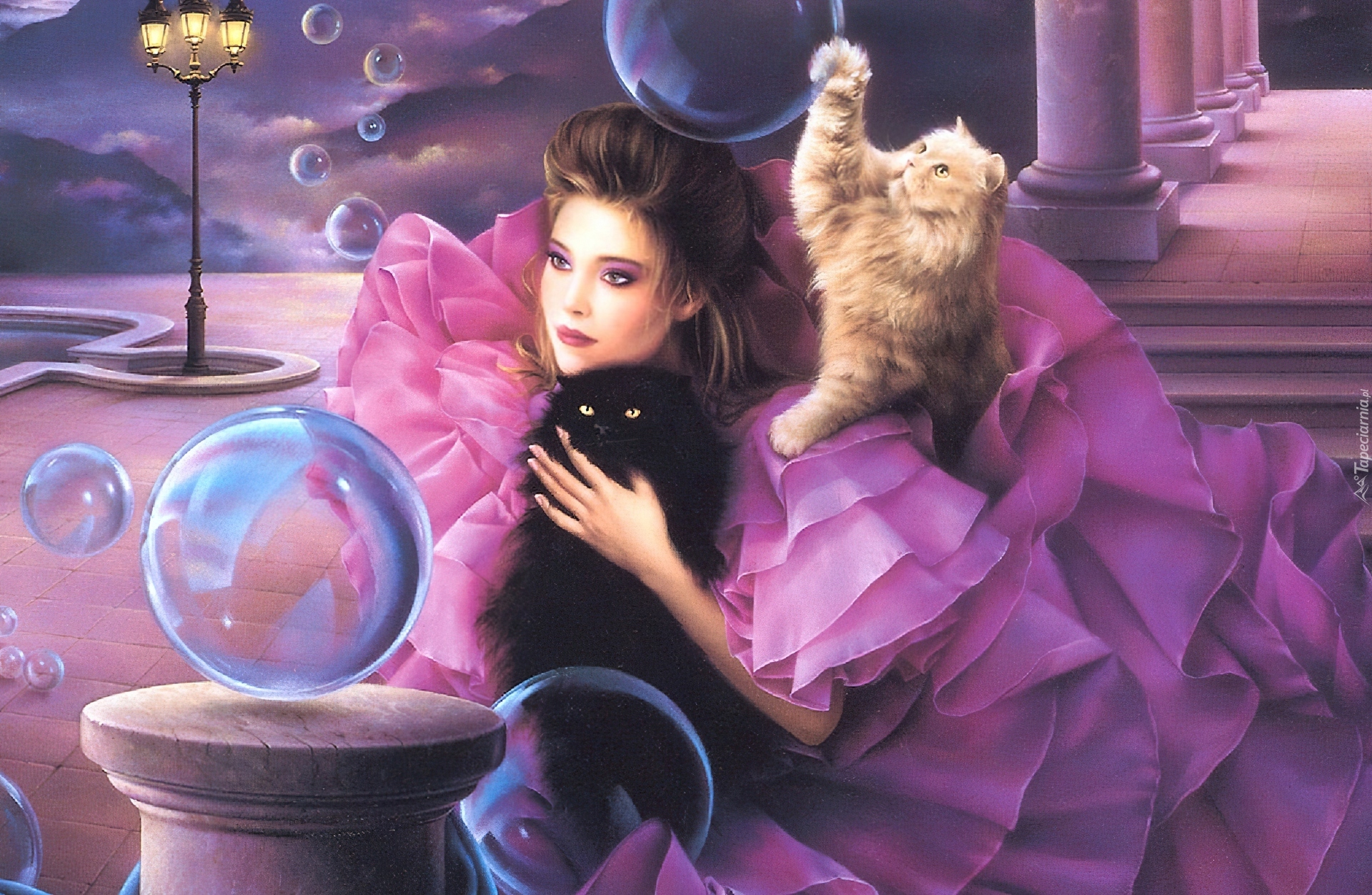 Edytor tapety: Dziewczyna, Bańki, Koty