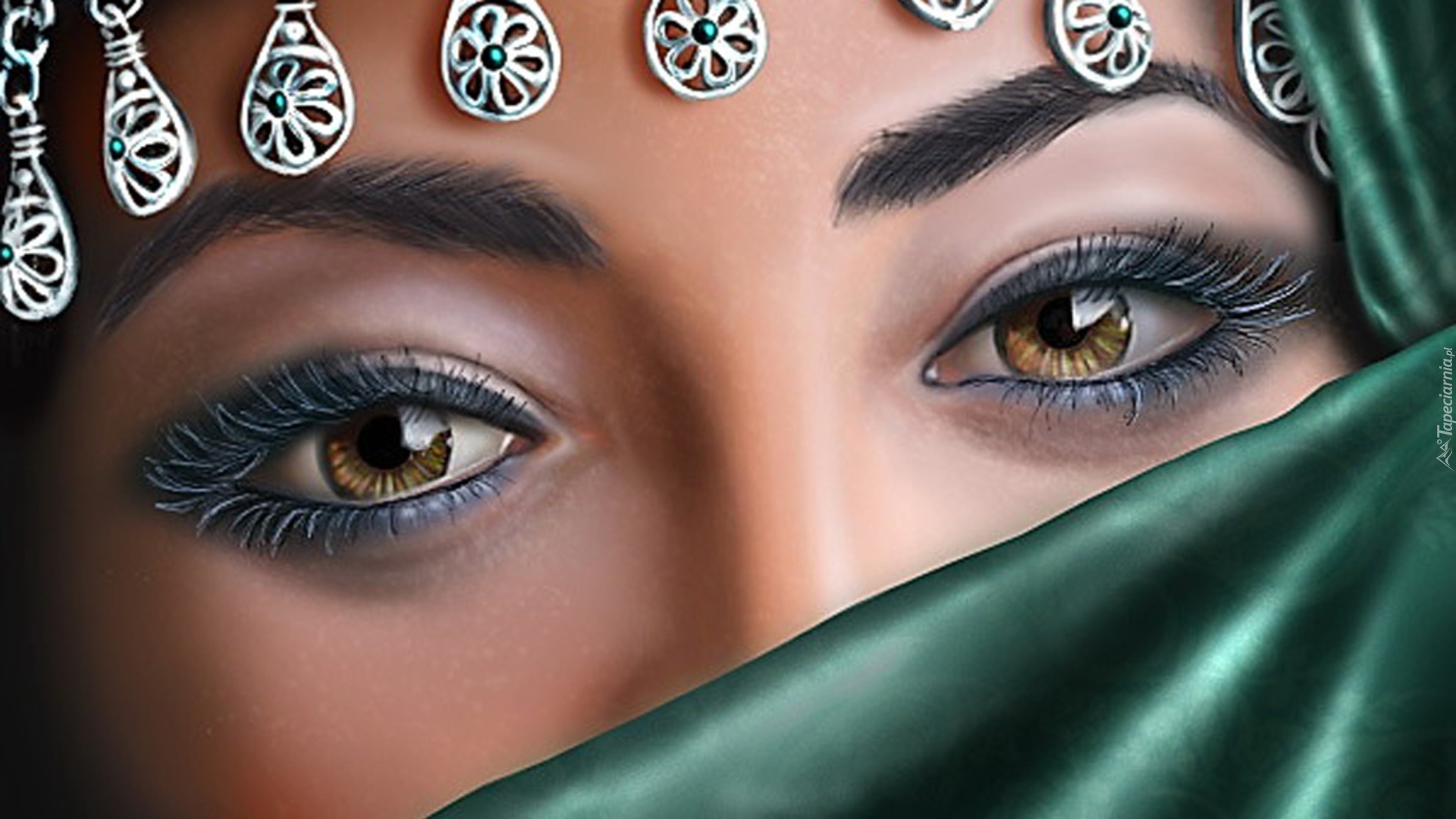 Edytor tapety: Twarz, Kobiety, Zielona, Chusta