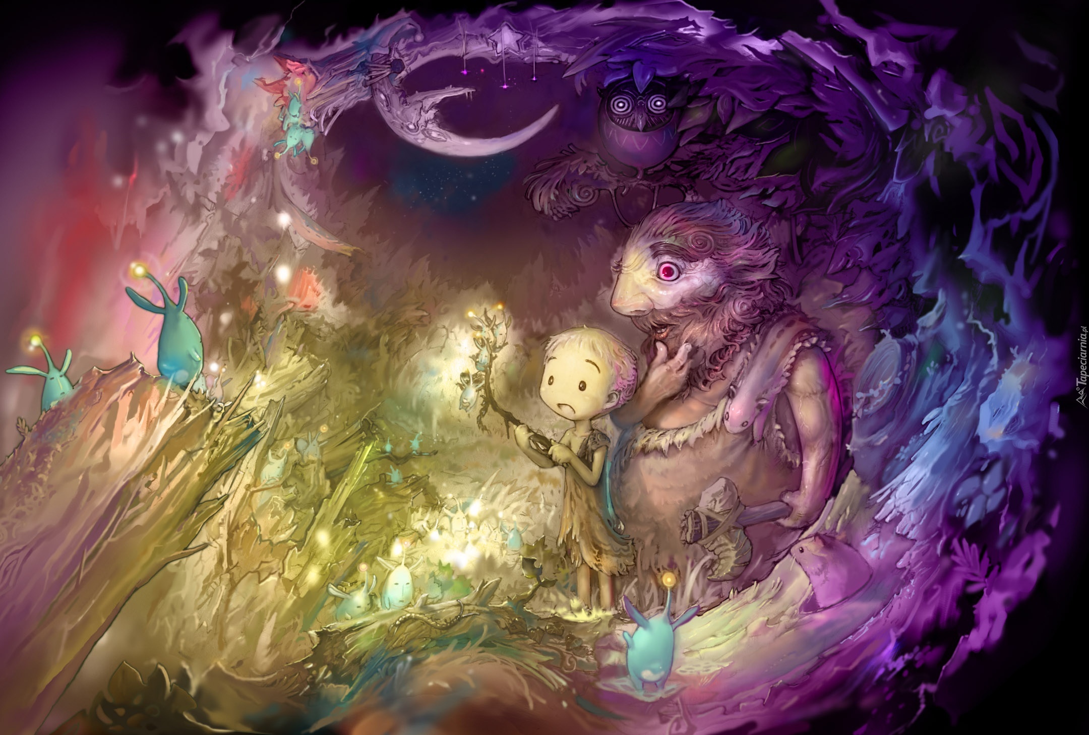 Edytor tapety: Chłopczyk, Las, Zwierzęta