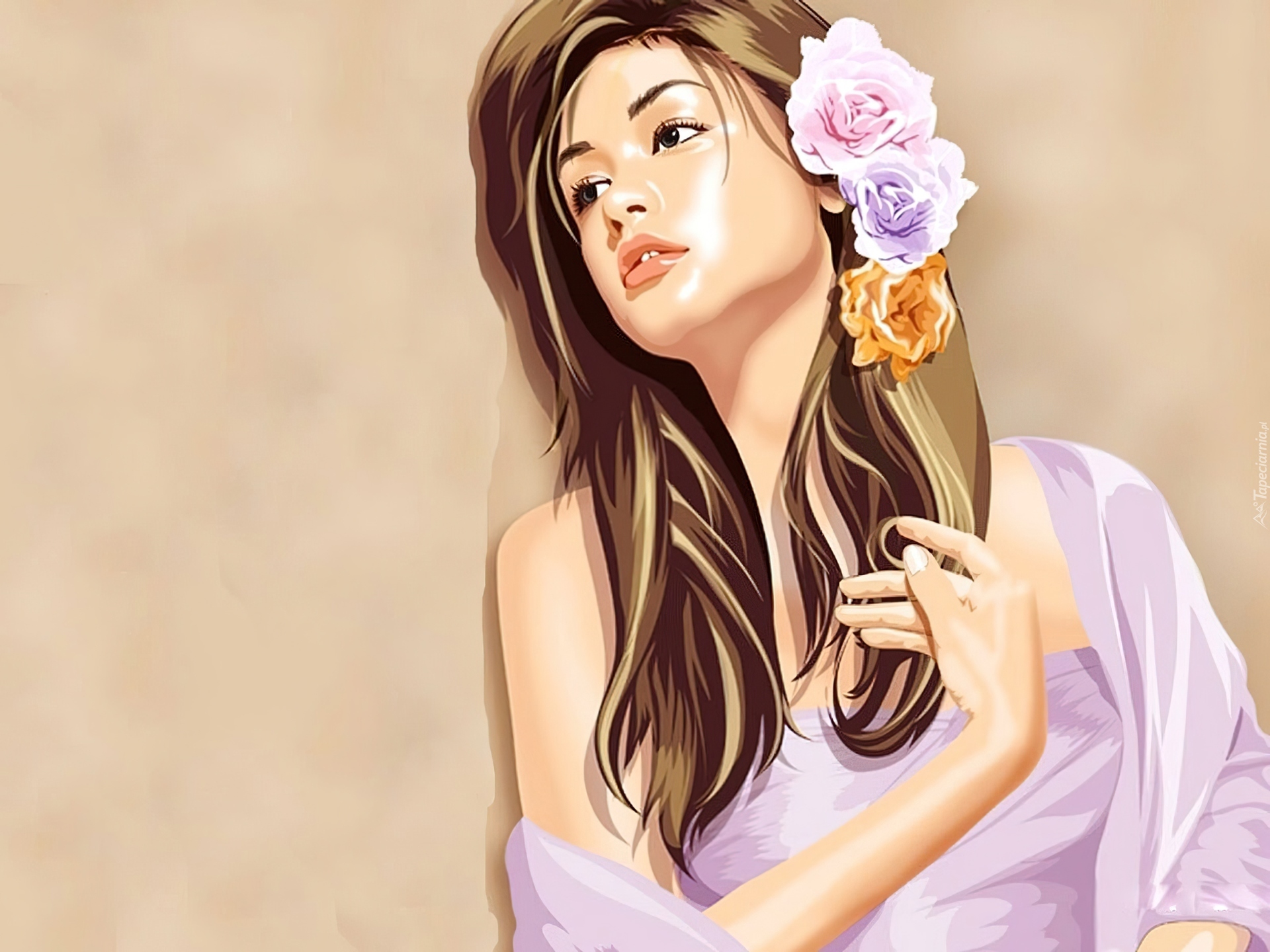 Edytor tapety: Zamyślona, Kobieta, Kwiaty