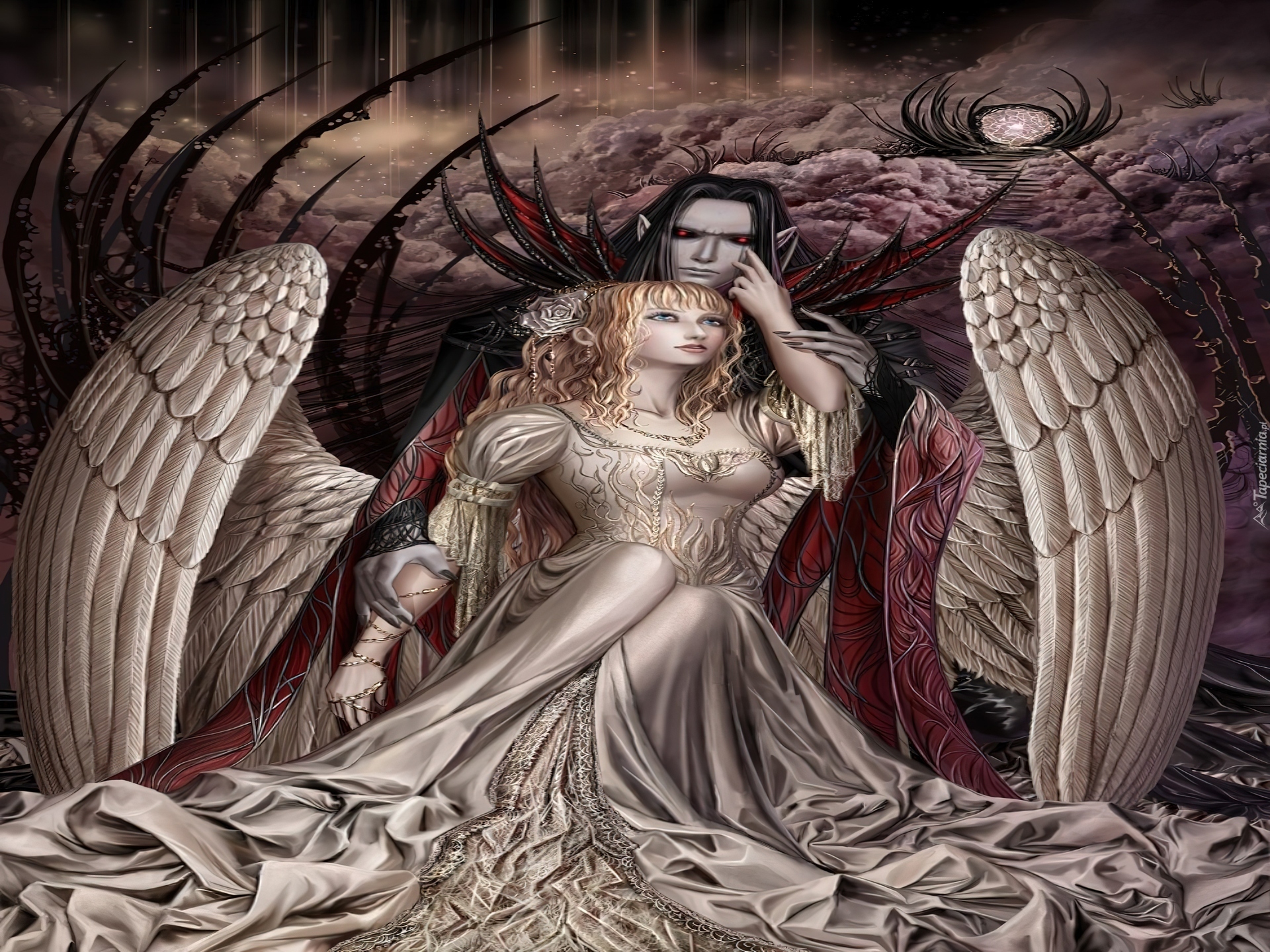 Edytor tapety: Kobieta, Anioł, Demon, Chmury