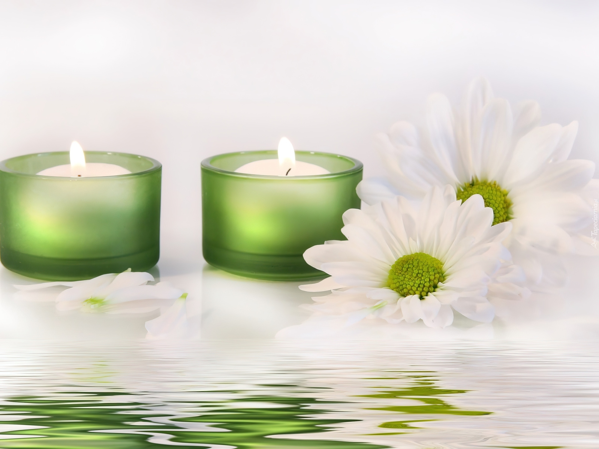 Edytor tapety: Kompozycja, Świece, Kwiaty, Woda