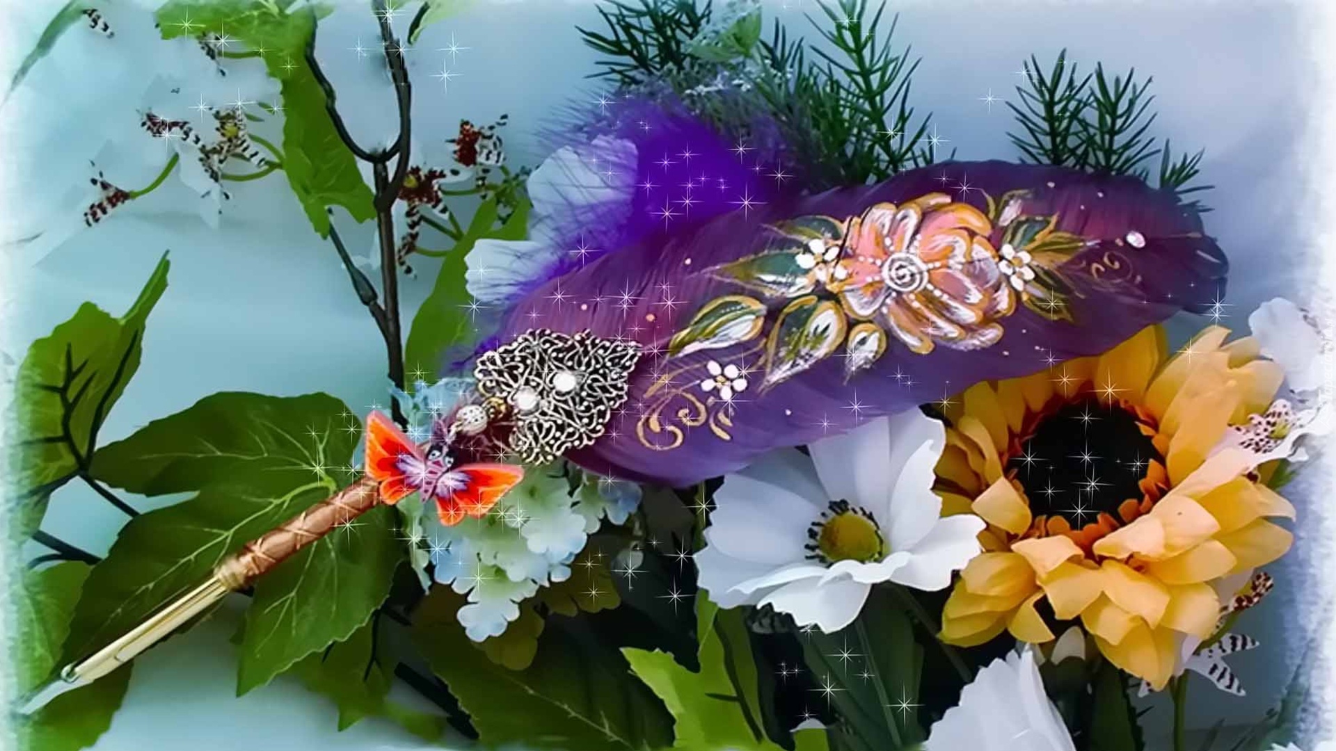 Edytor tapety: Pióro, Motylek, Kwiaty