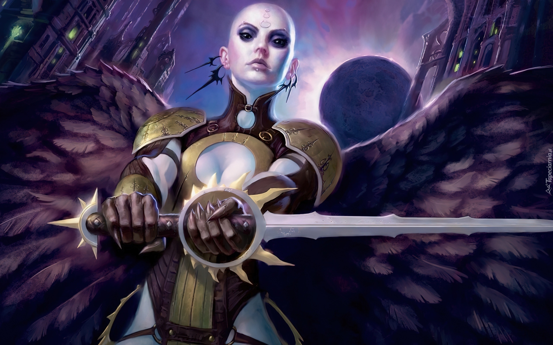 Edytor tapety: Kobieta, Anioł, Zbroja, Miecz