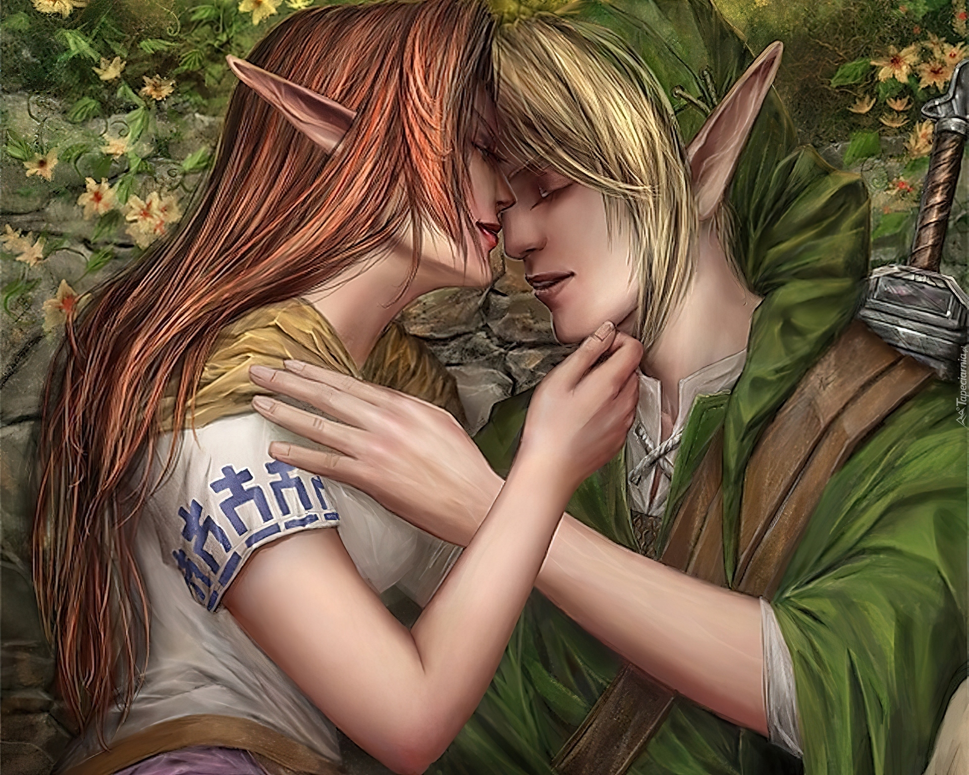 Edytor tapety: Dwa, Elfy, Pocałunek