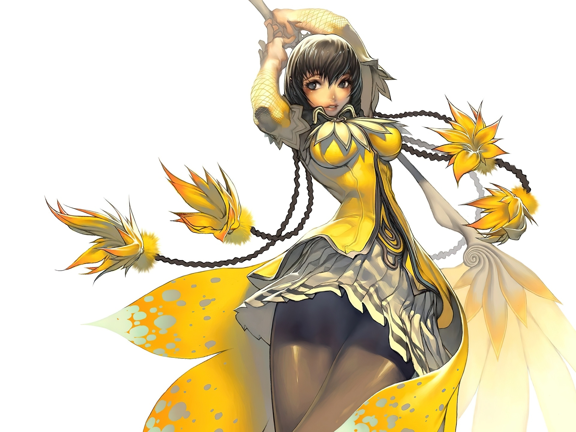 Edytor tapety: Dziewczyna, Warkocze, Żółta, Suknia