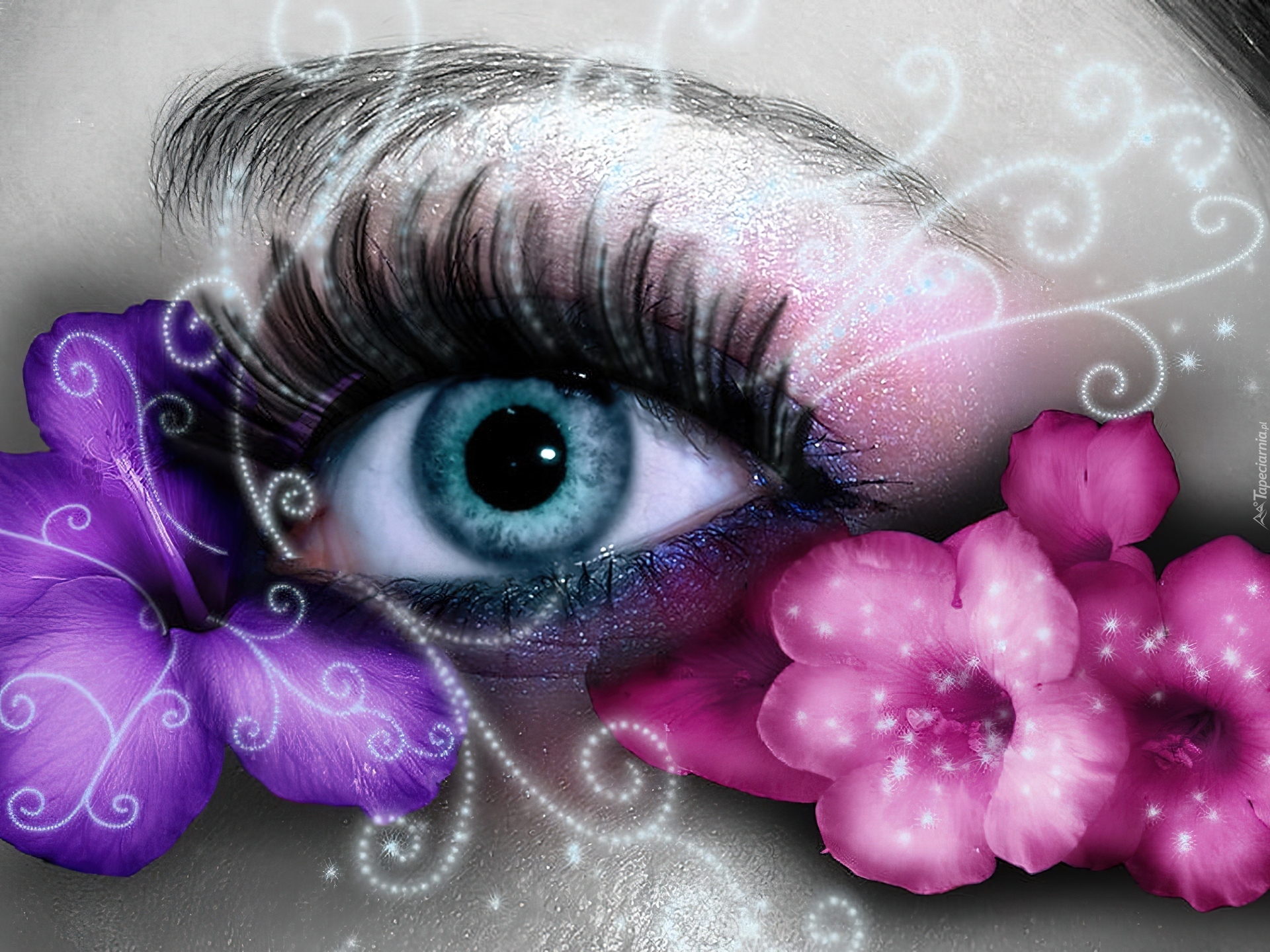 Edytor tapety: Kobiece, Oko, Kwiatki