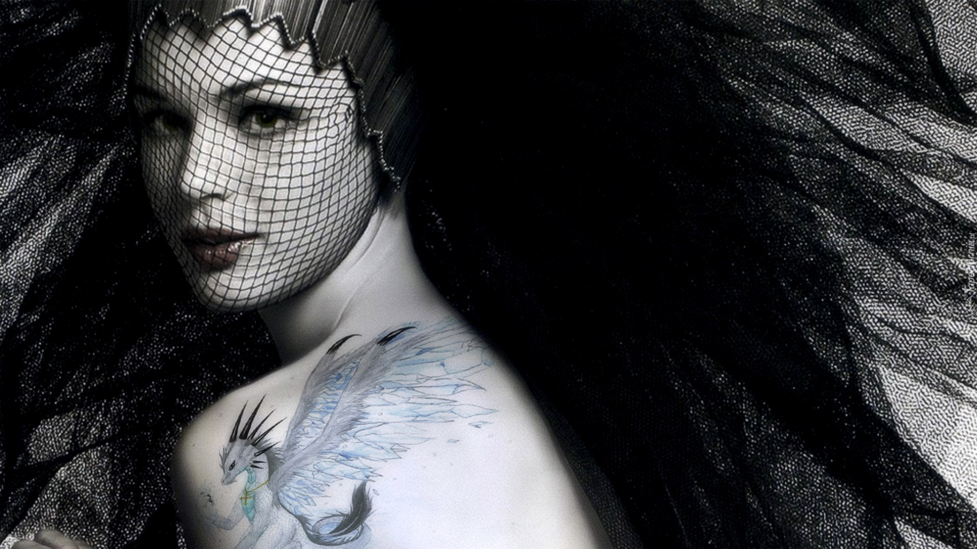 Edytor tapety: Kobieta, Tatuaż, Czarny, Welon, Woalka