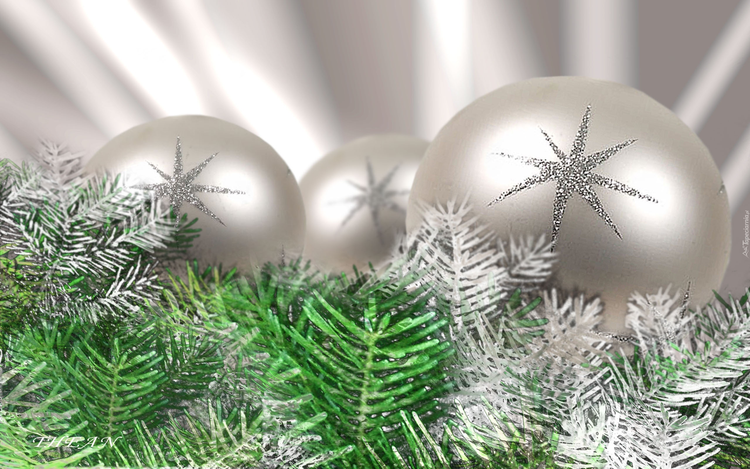 Edytor tapety: Srebrne, Bombki, Świerk