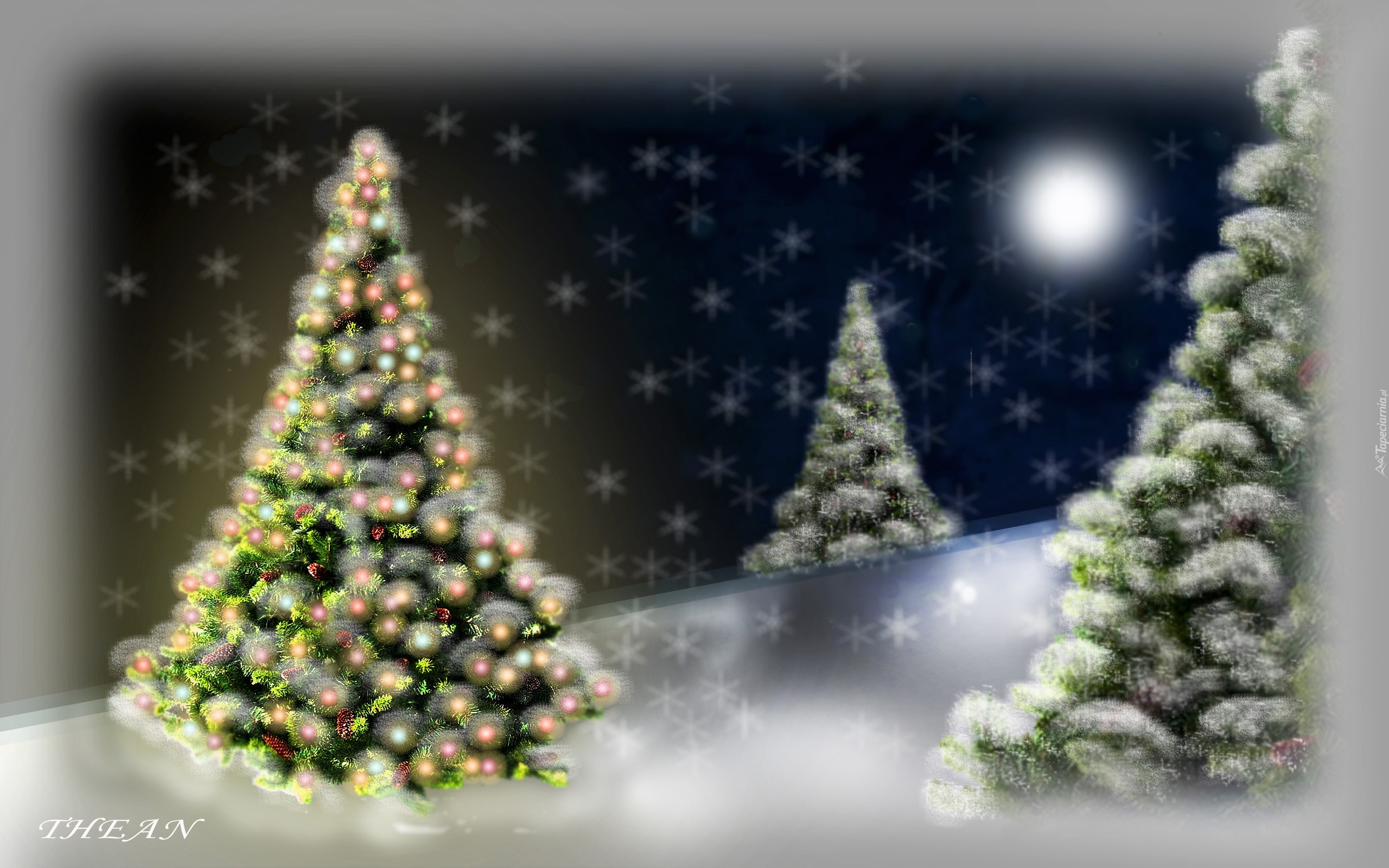 Edytor tapety: Choinki, Śnieżynki, Księżyc, Śnieg