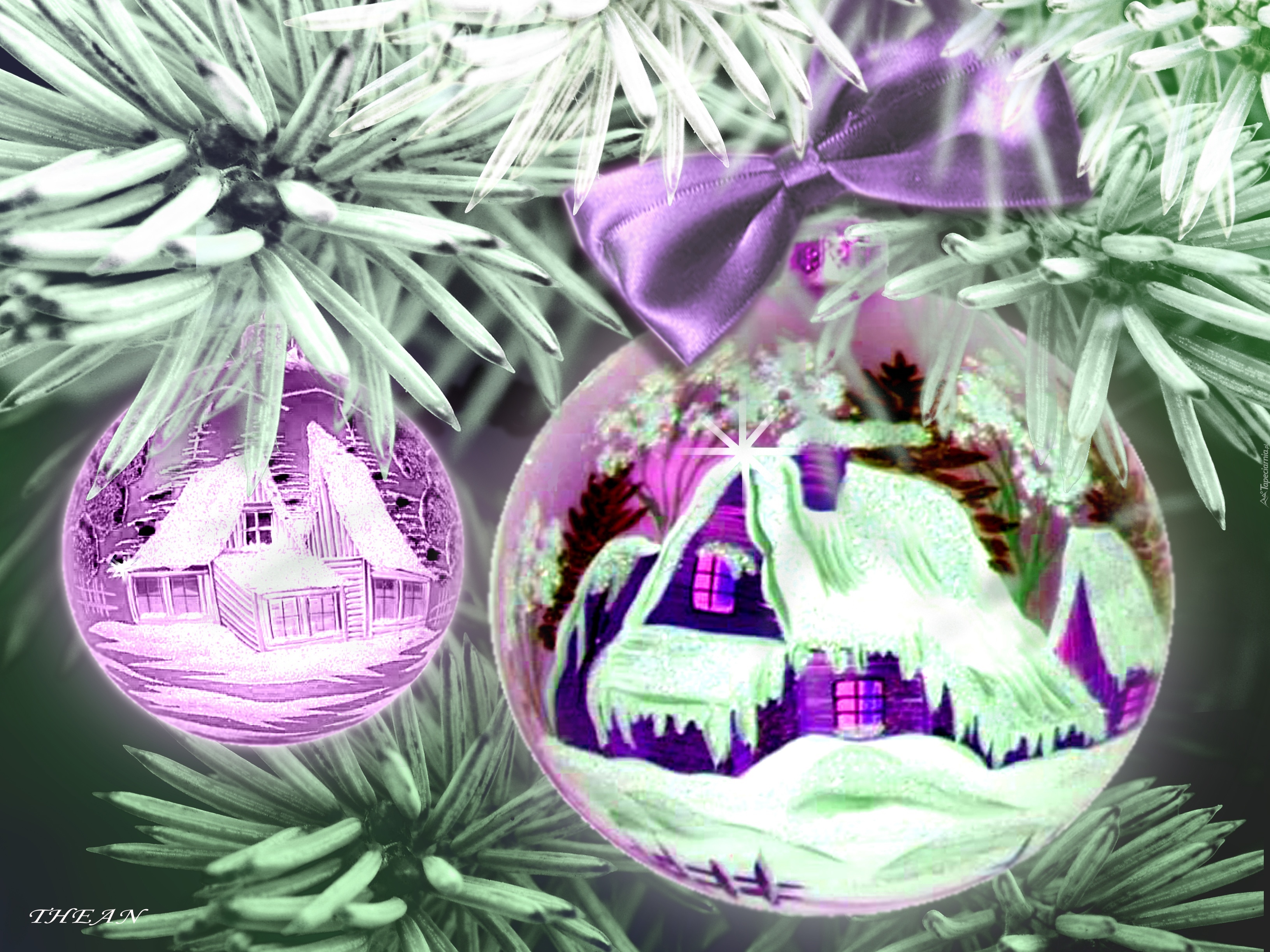 Edytor tapety: Fioletowe, Bombki, Choinka