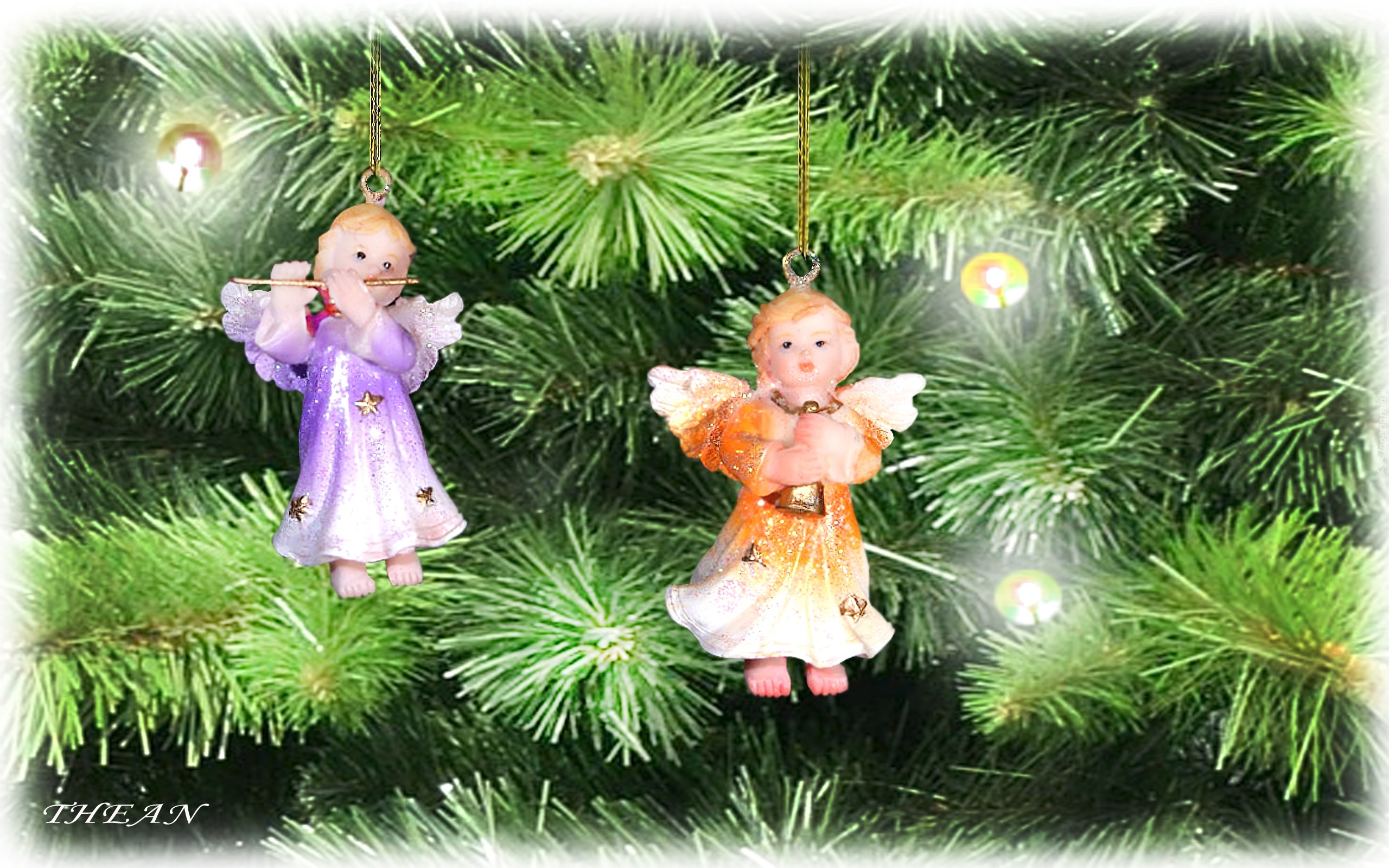 Edytor tapety: Dwa, Aniołki, Choinka, Światełka