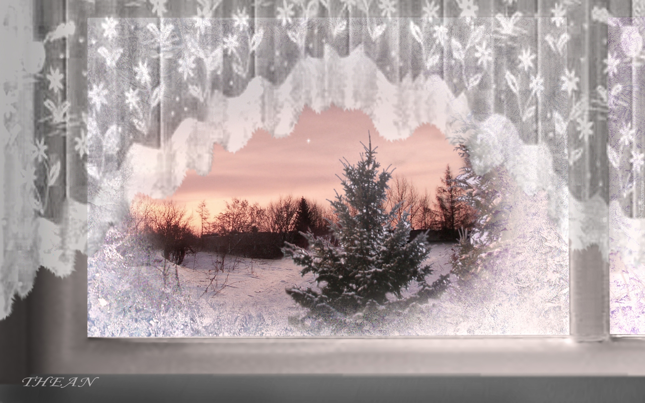 Edytor tapety: Zimowy, Widok, Za, Oknem