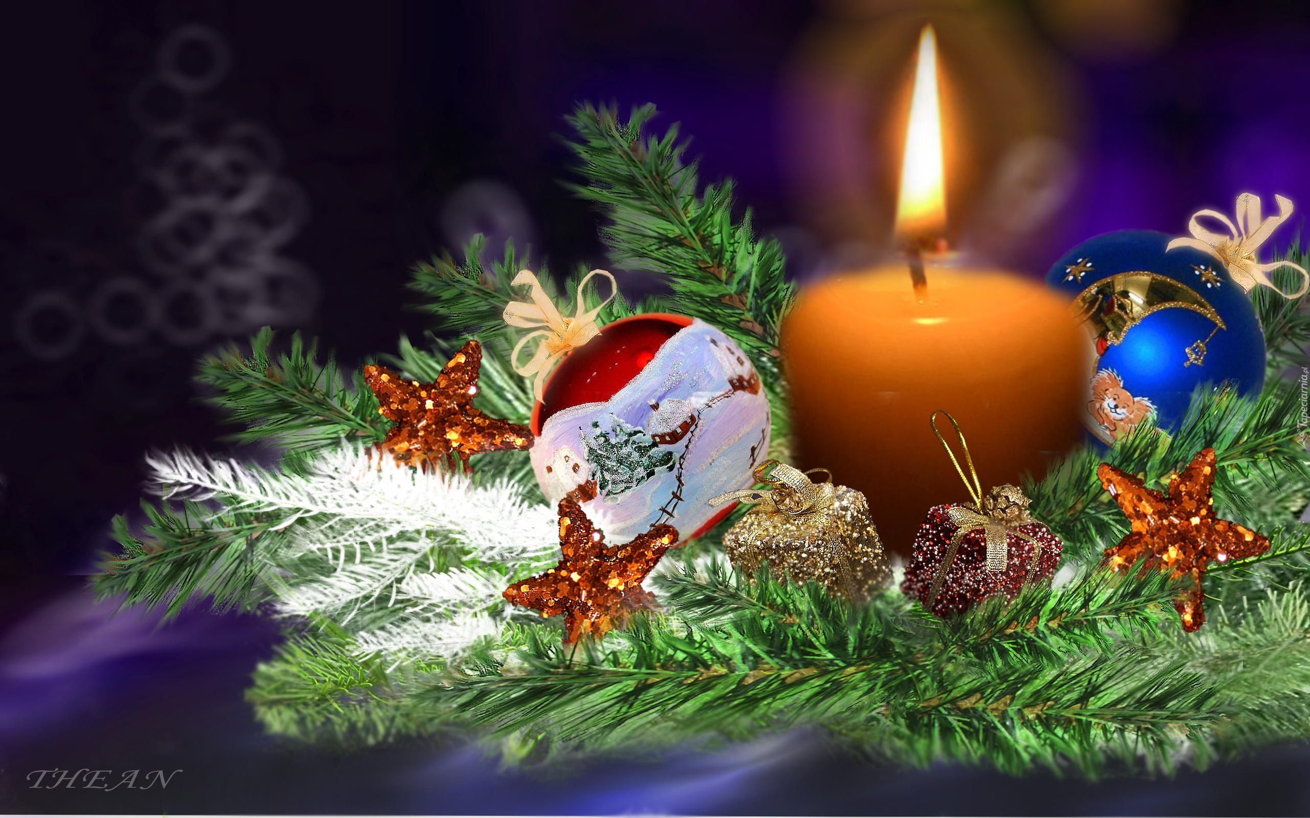 Edytor tapety: Stroik, Świeczka, Bombki, Gwiazdki, Kompozycja