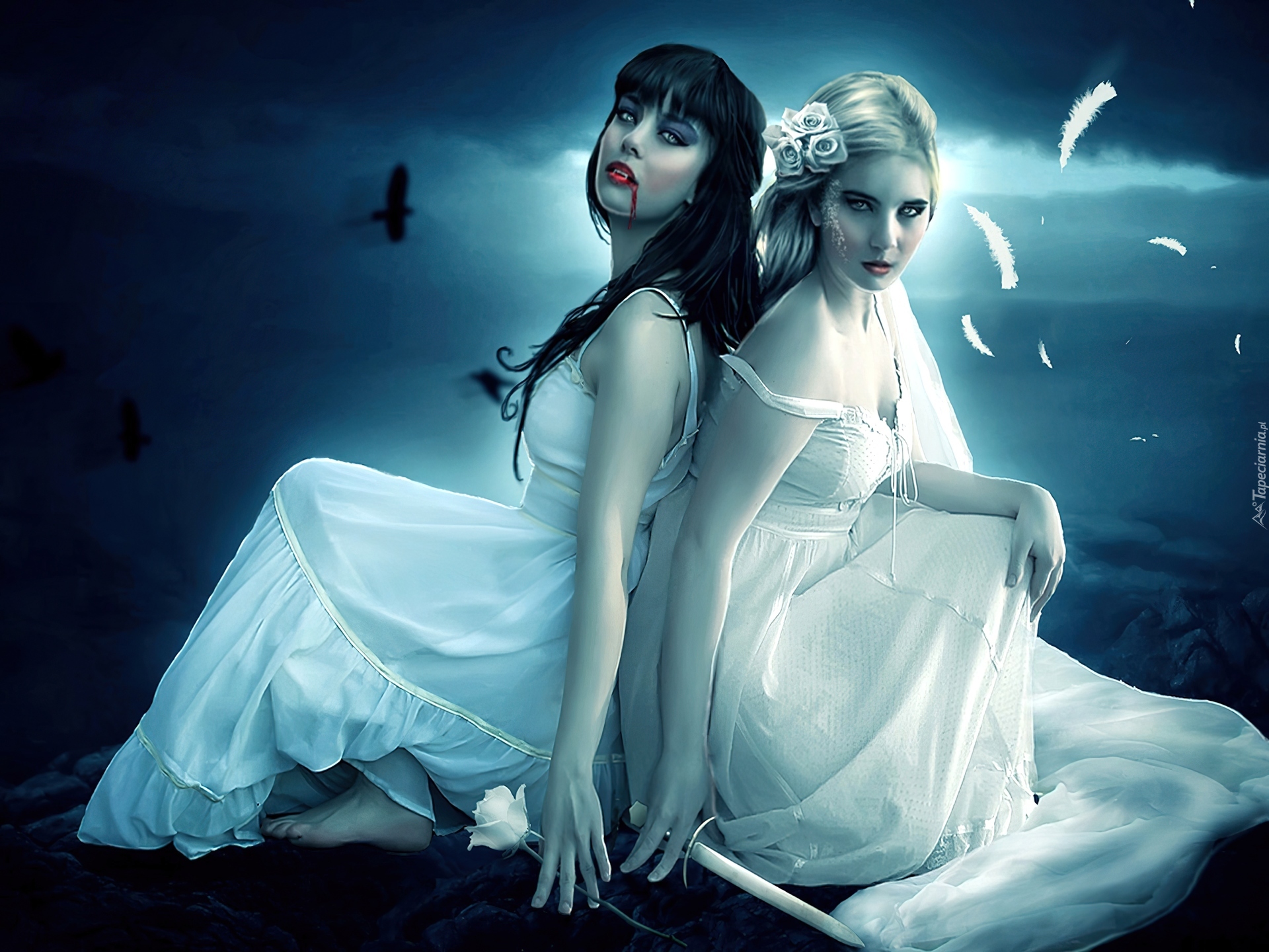 Edytor tapety: Kobiety, Miecz, Róża, Pióra