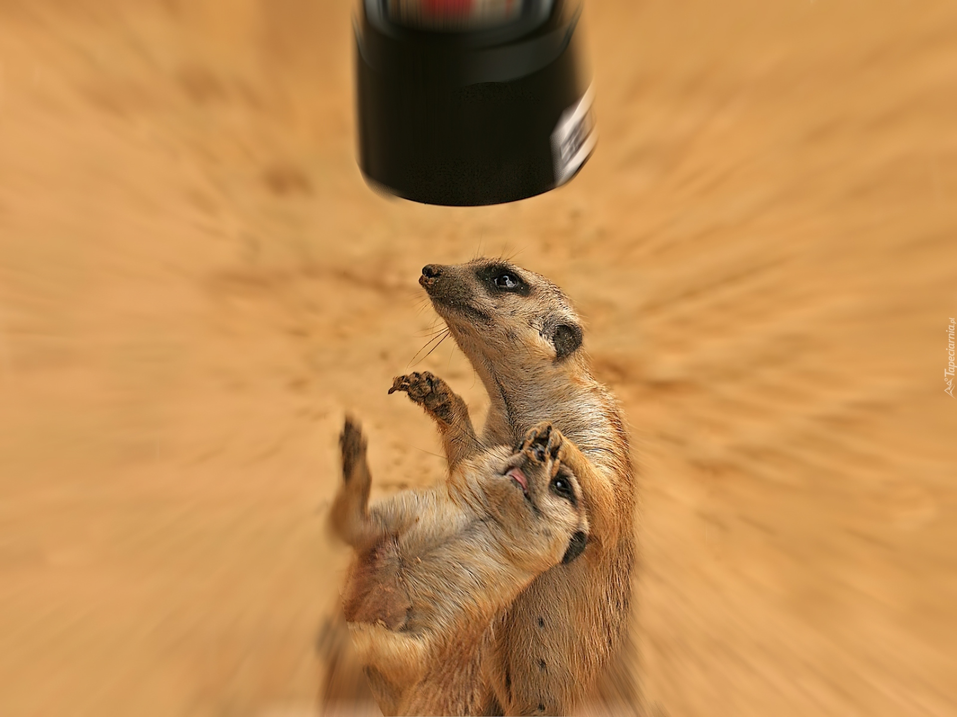 Edytor tapety: Dwie, Surykatki, Obiektyw