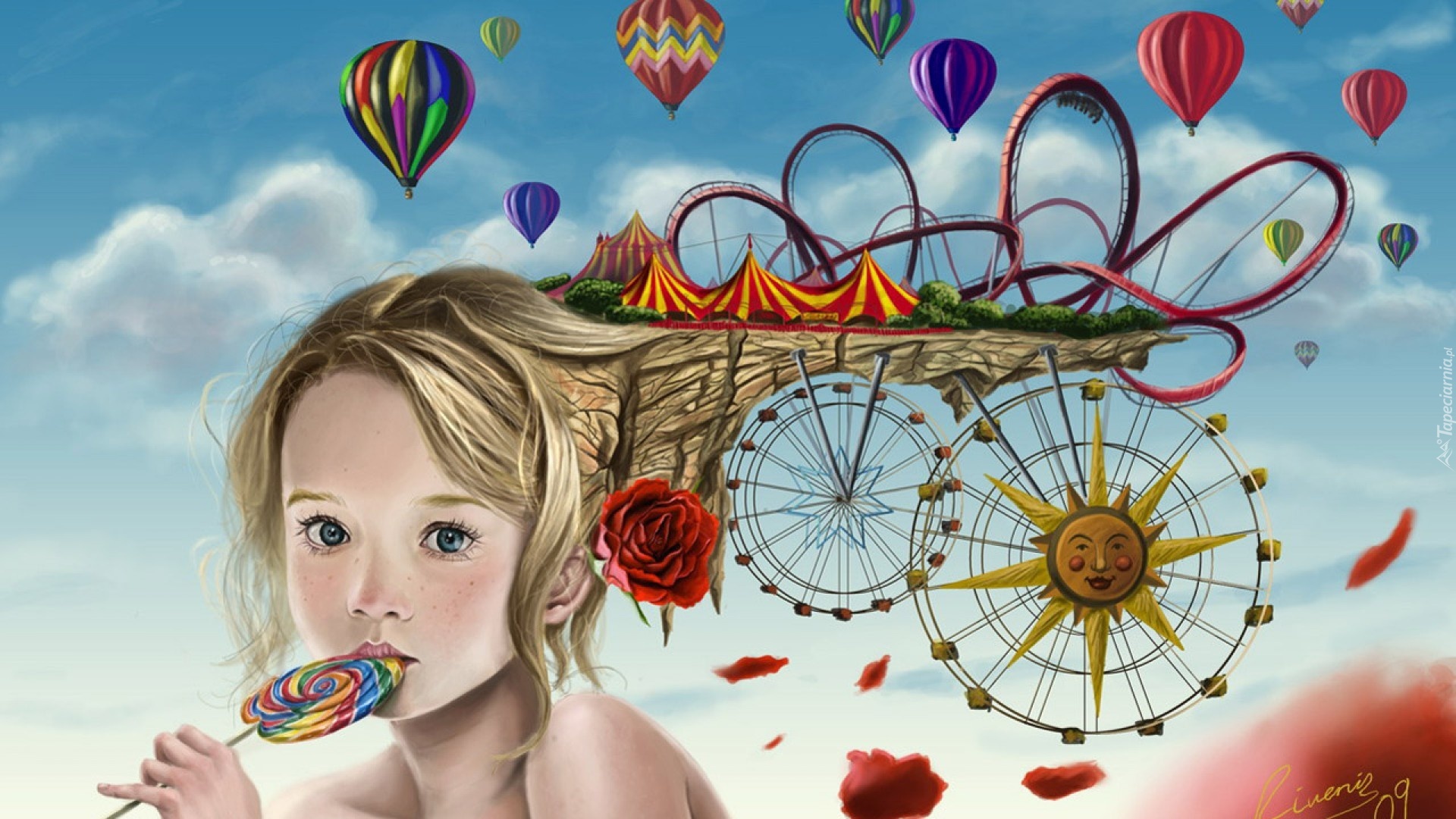 Edytor tapety: Dziewczynka, Lizak, Balony