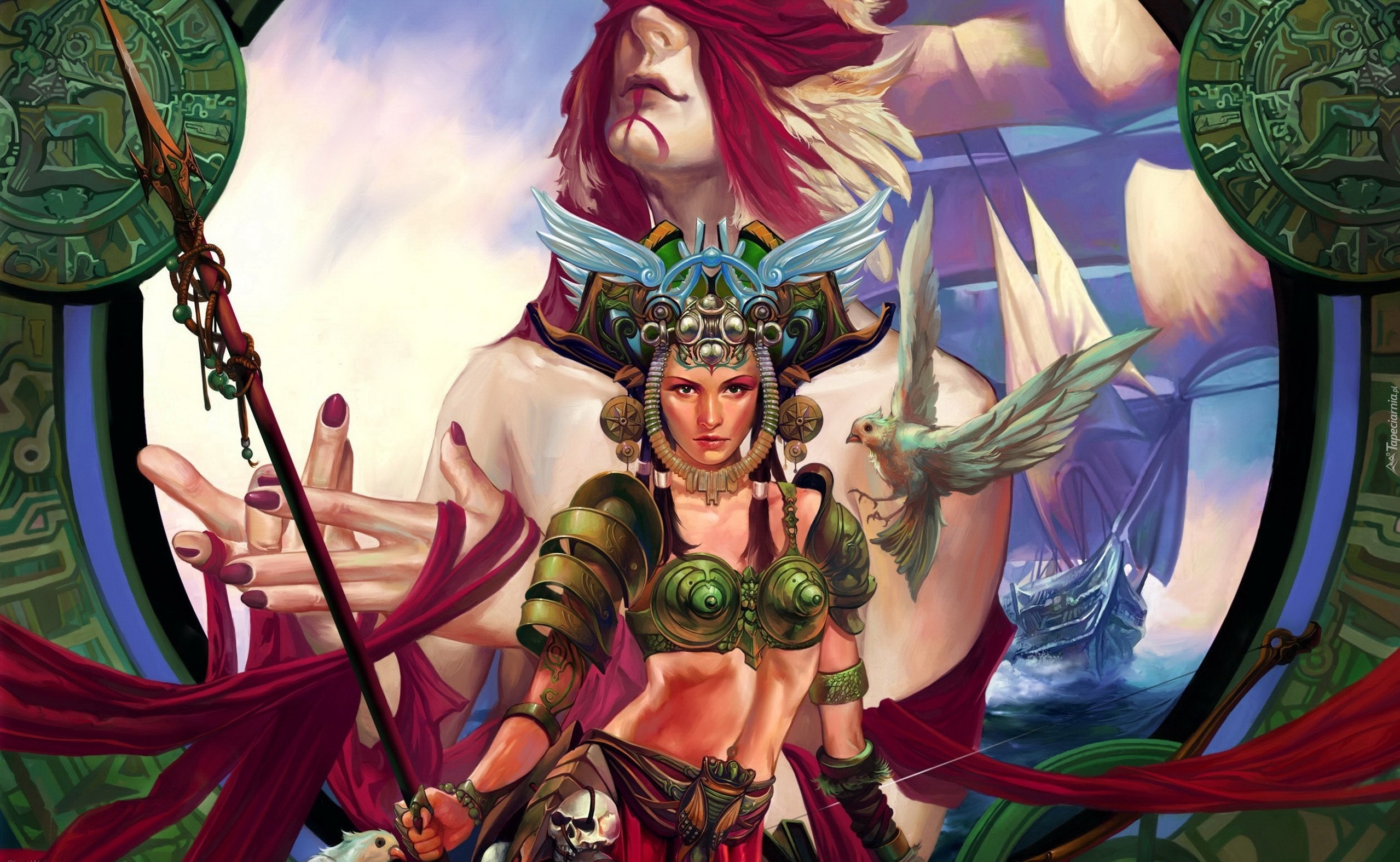 Edytor tapety: Kobieta, Zbroja, Tarcza, Dłonie, Ptak