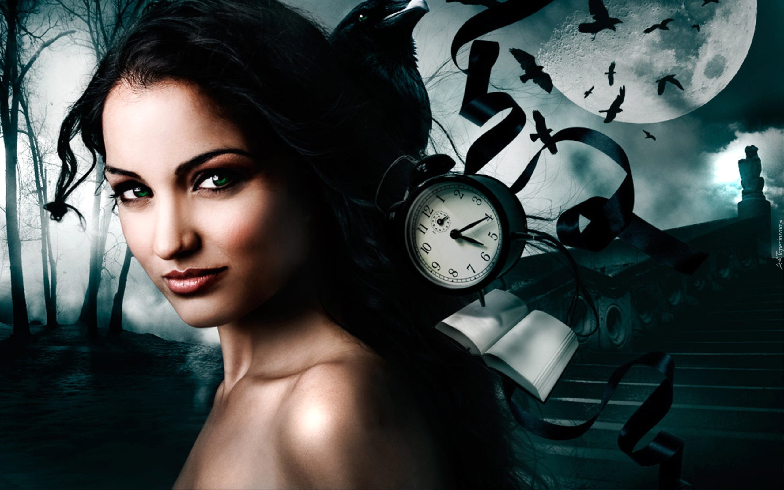 Edytor tapety: Dziewczyna, Zegarek, Ptaki, Planeta