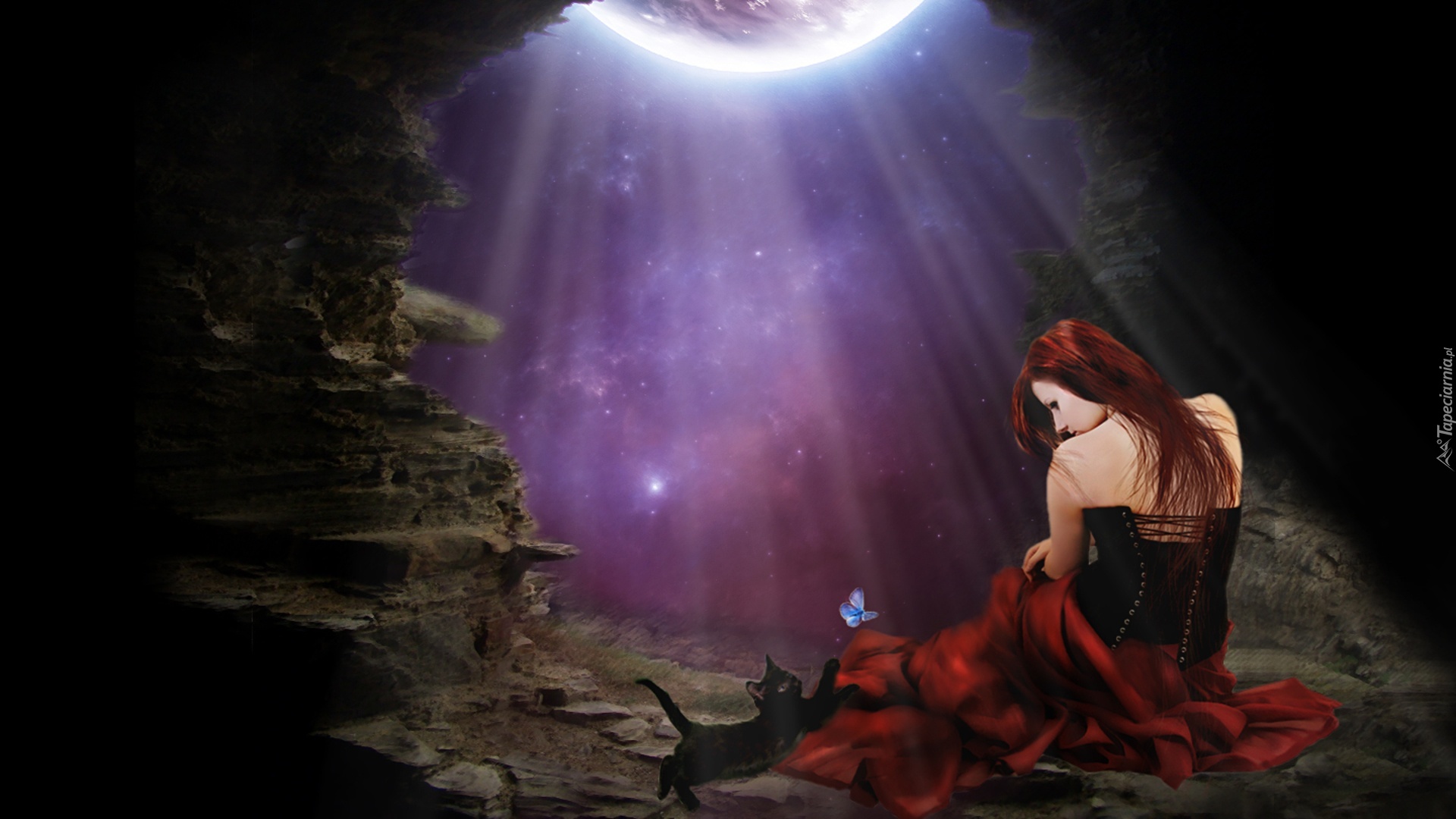 Edytor tapety: Kobieta, Kot, Księżyc
