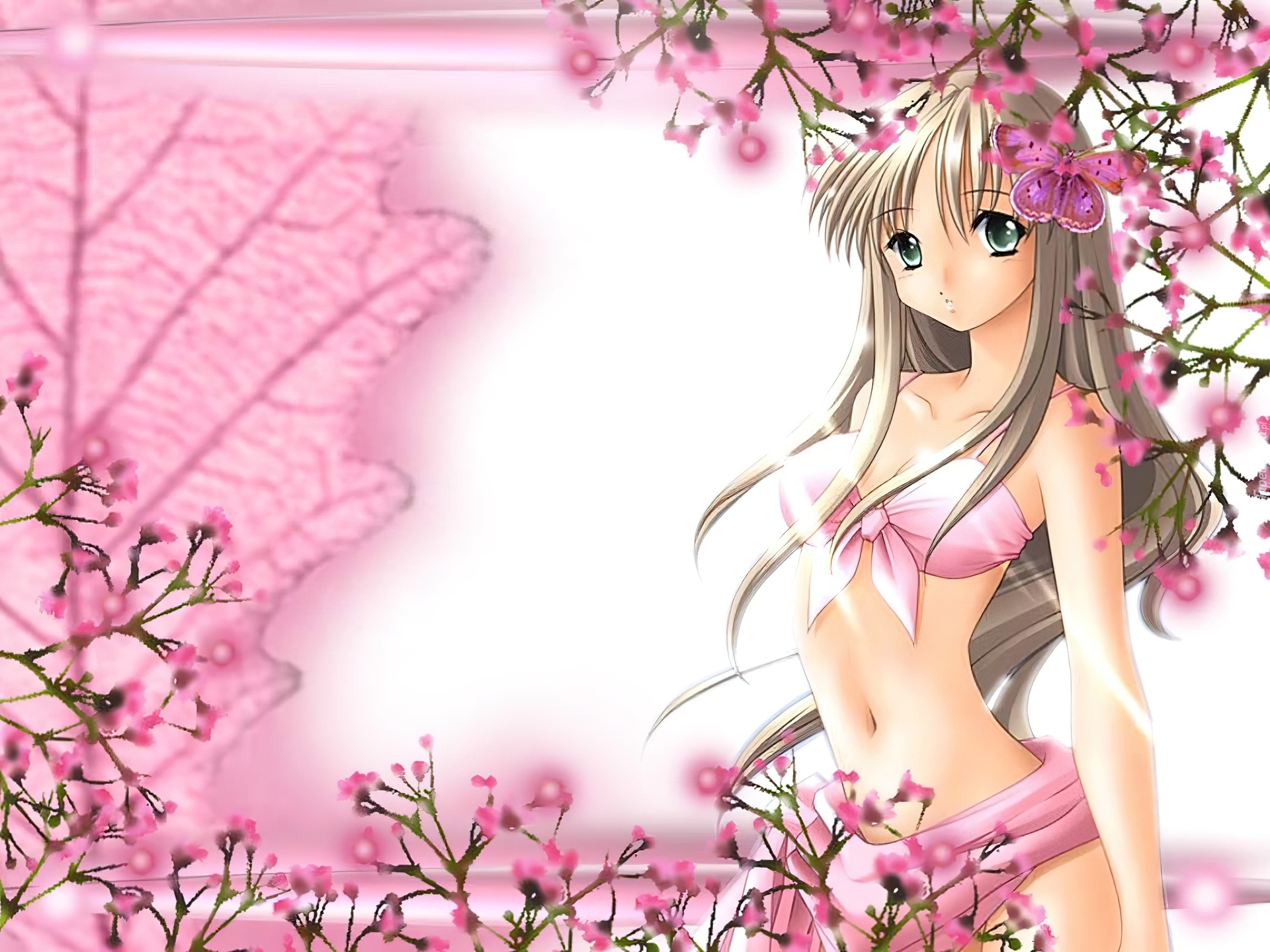 Edytor tapety: Dziewczyna, Motyl, Liść, Kwiatki