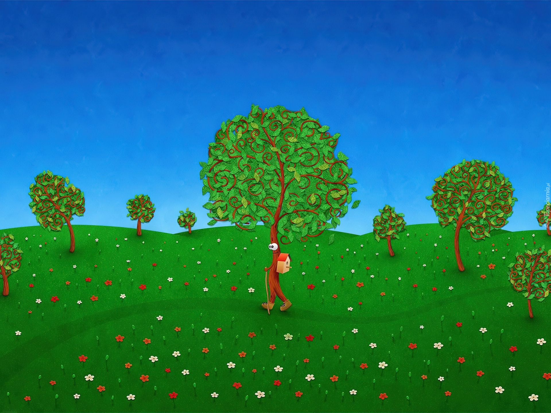 Edytor tapety: Chodzące, Drzewo, Łąka
